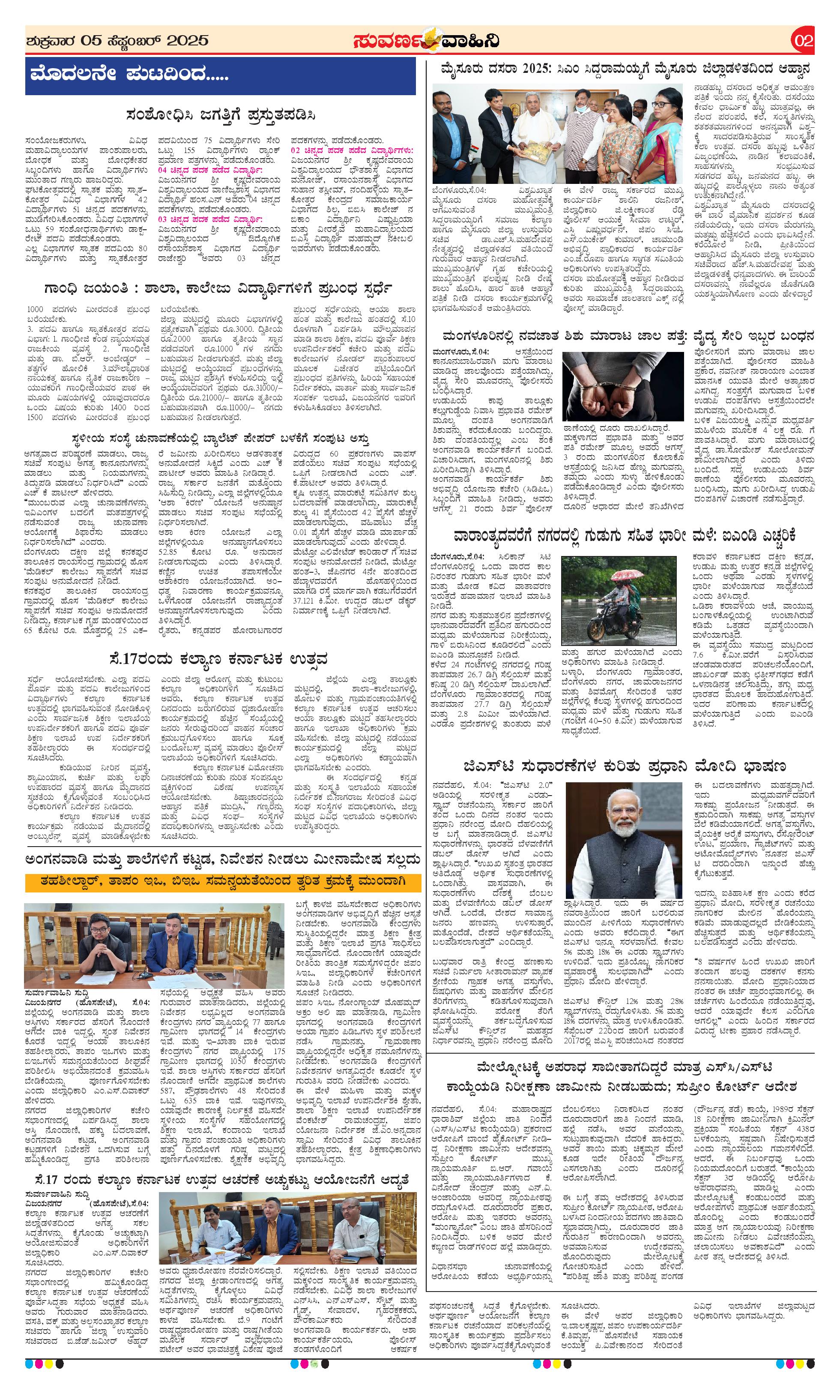 05 Sep 2025 Suvarna Vaahini Page: 2 September 05, 2025 << First << 2 >> Last >> Page 1Page 2Page 3Page 4 × 05 Sep 2025 Suvarna Vaahini page-1page-2page-3page-4 << First << 2 >> Last >> page-1page-2page-3page-4