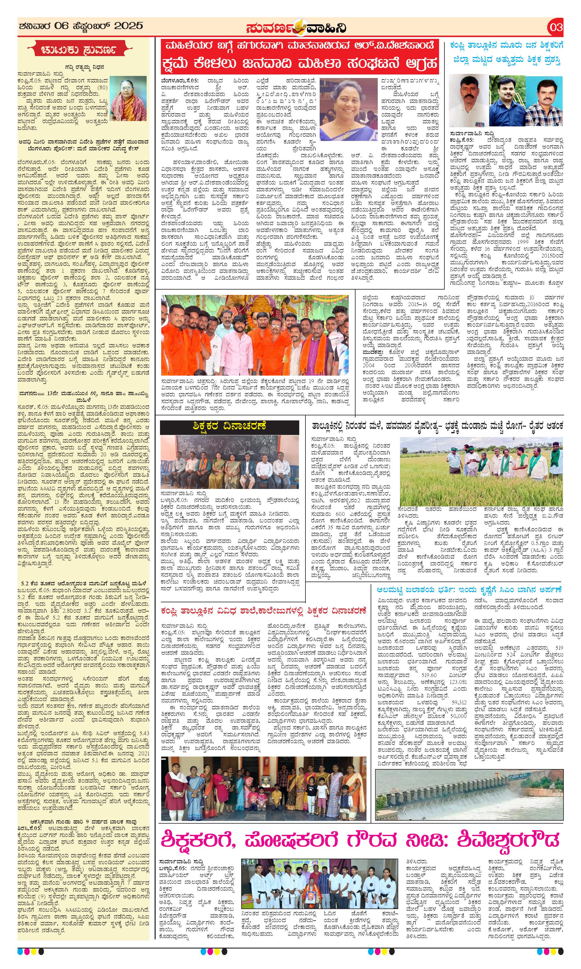 06 Sep 2025 Suvarna Vaahini Page: 3 September 06, 2025 << First << 3 >> Last >> Page 1Page 2Page 3Page 4 × 06 Sep 2025 Suvarna Vaahini page-1page-2page-3page-4 << First << 3 >> Last >> page-1page-2page-3page-4