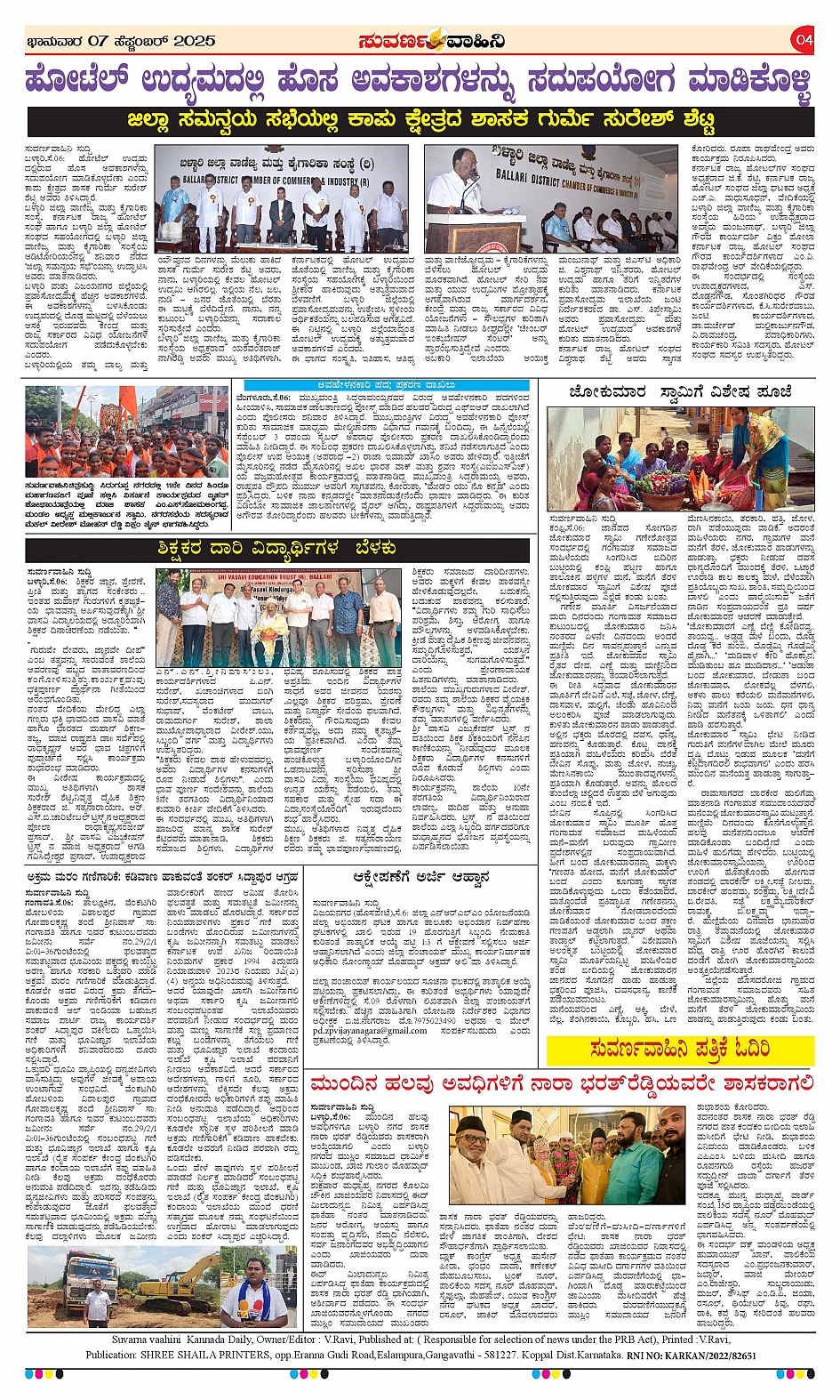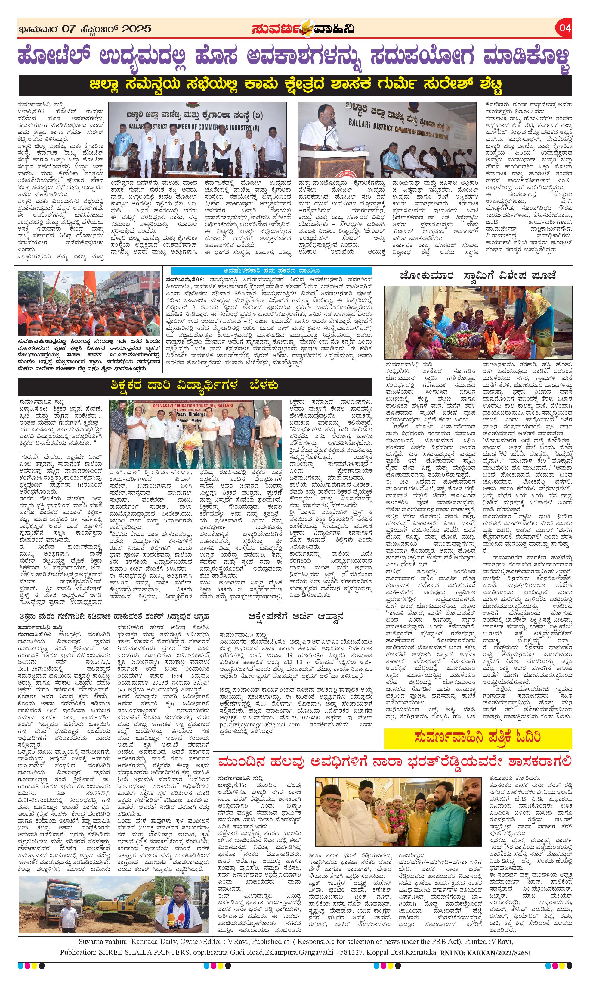 07 Sep 2025 Suvarna Vaahini Page: 4 September 07, 2025 << First << 4 >> Last >> Page 1Page 2Page 3Page 4 × 07 Sep 2025 Suvarna Vaahini page-1page-2page-3page-4 << First << 4 >> Last >> page-1page-2page-3page-4