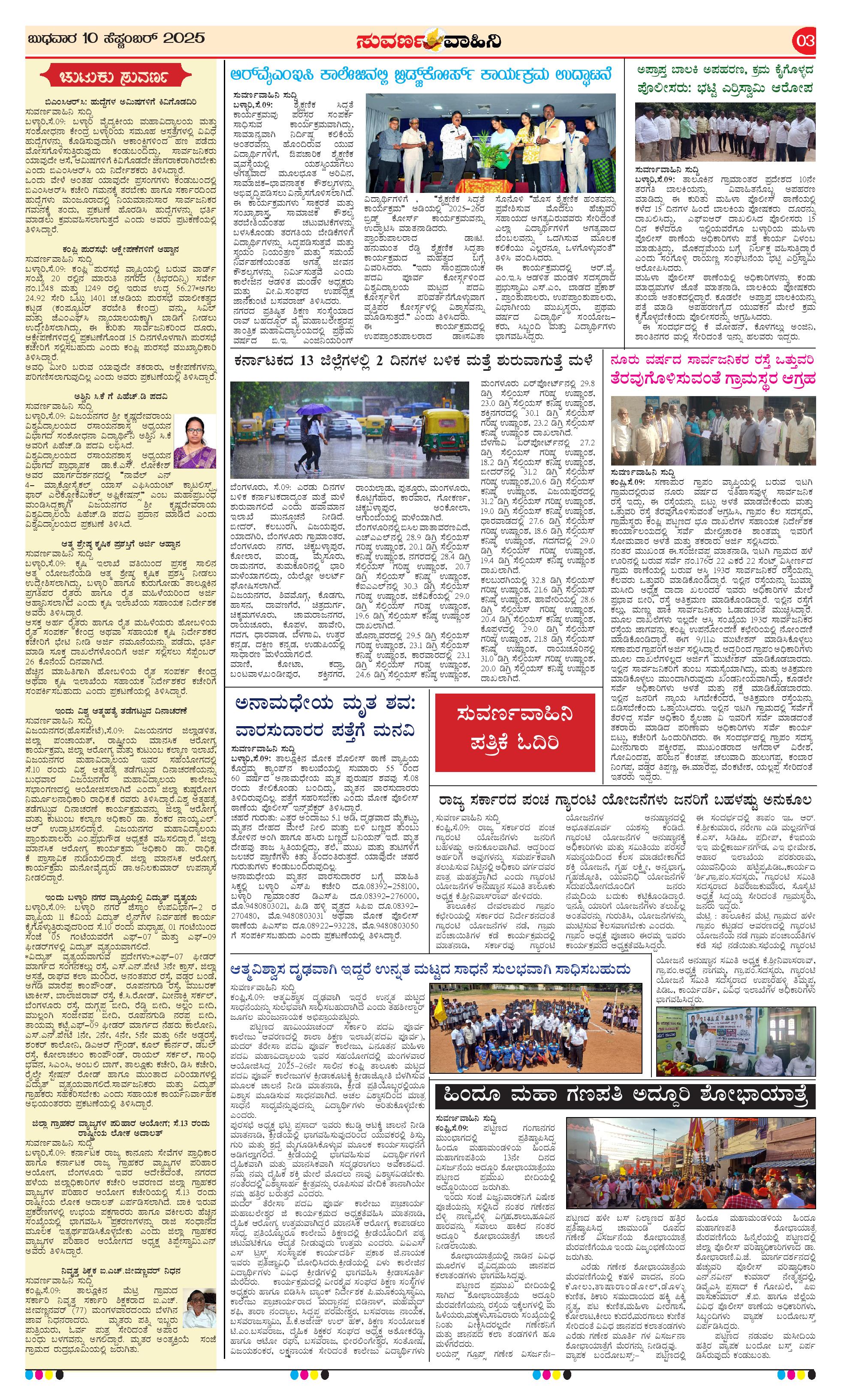 10 Sep 2025 Suvarna Vaahini Page: 3 September 10, 2025 << First << 3 >> Last >> Page 1Page 2Page 3Page 4 × 10 Sep 2025 Suvarna Vaahini page-1page-2page-3page-4 << First << 3 >> Last >> page-1page-2page-3page-4