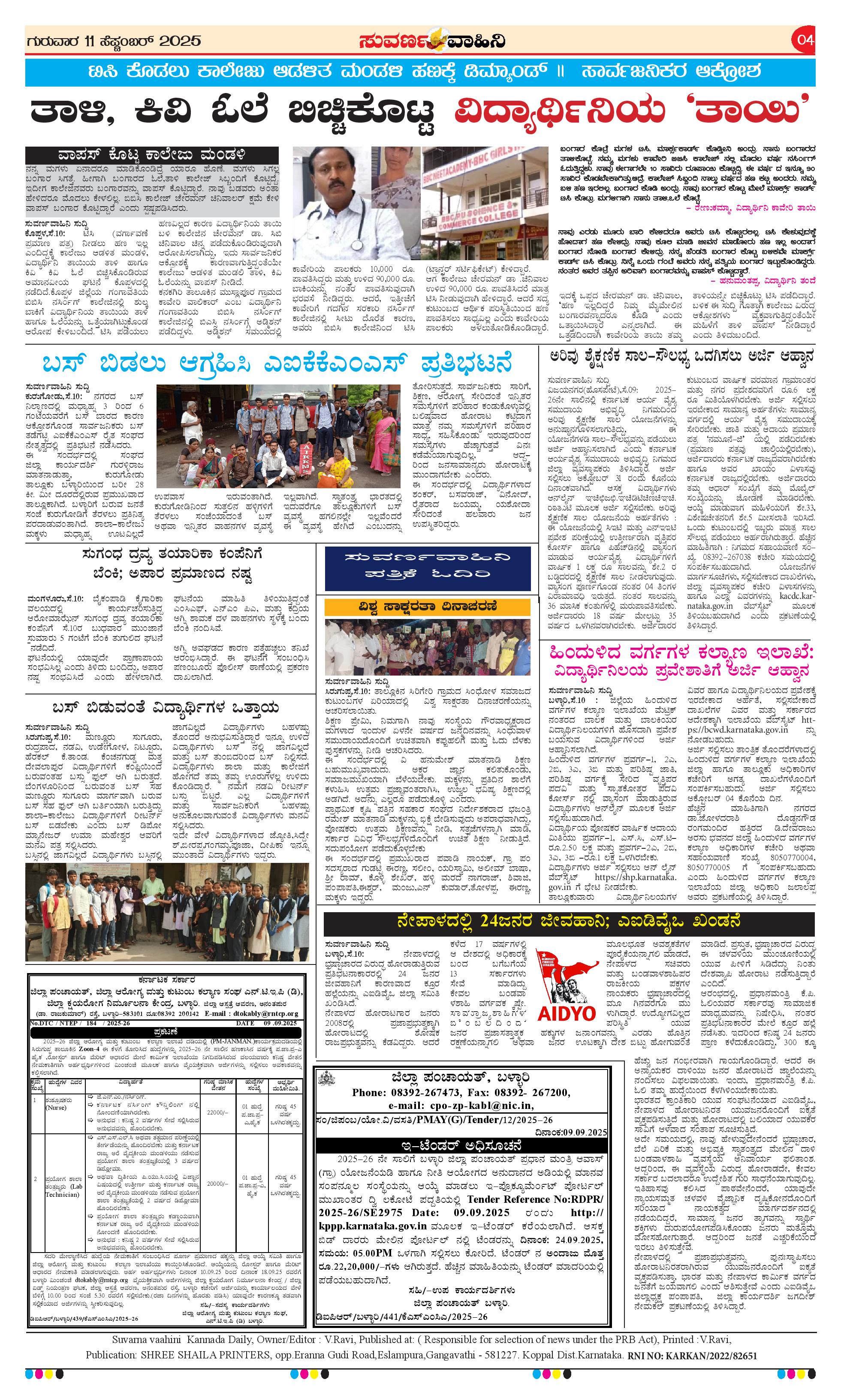 11 Sep 2025 Suvarna Vaahini Page: 4 September 11, 2025 << First << 4 >> Last >> Page 1Page 2Page 3Page 4 × 11 Sep 2025 Suvarna Vaahini page-1page-2page-3page-4 << First << 4 >> Last >> page-1page-2page-3page-4
