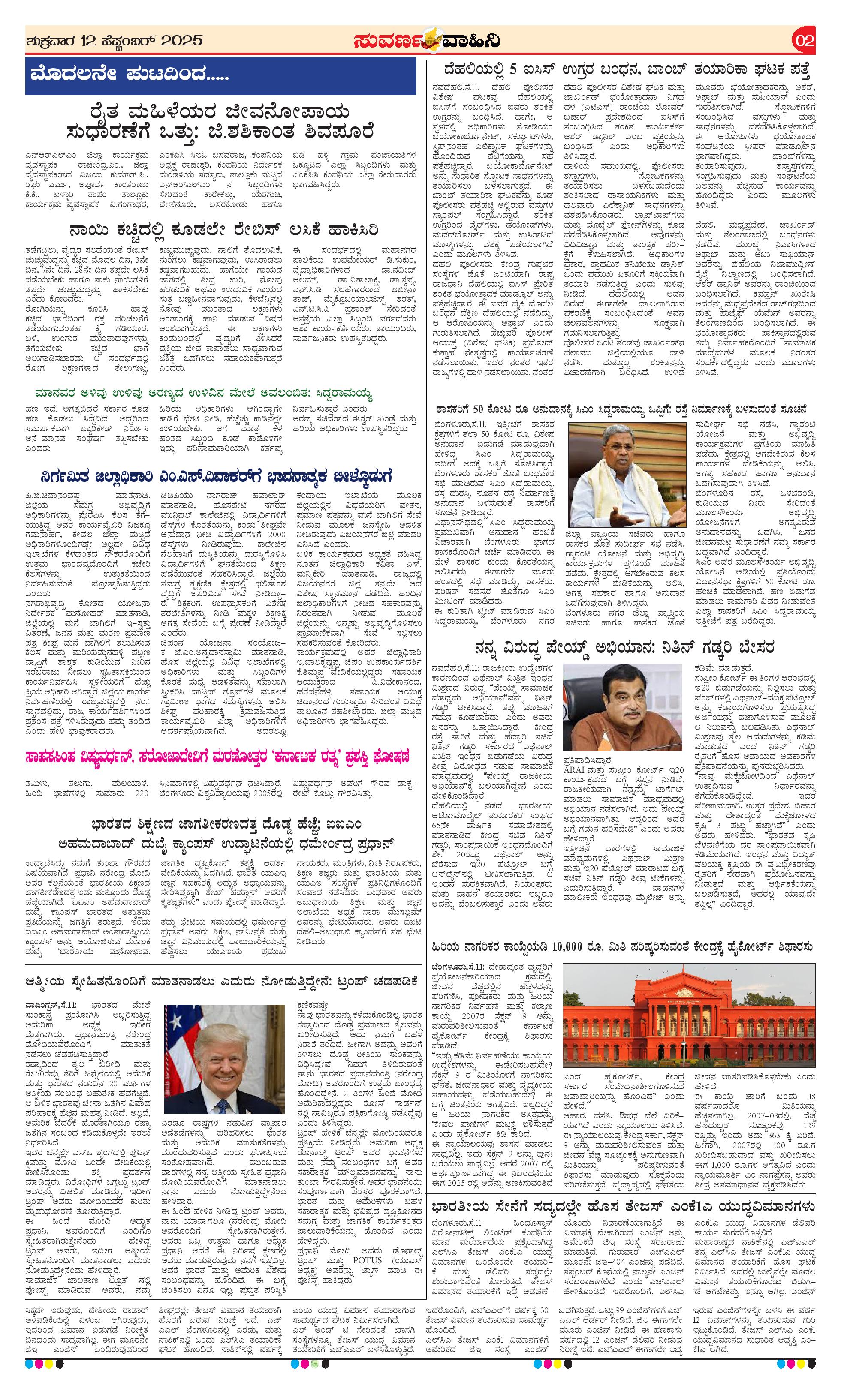 12 Sep 2025 Suvarna Vaahini Page: 2 September 12, 2025 << First << 2 >> Last >> Page 1Page 2Page 3Page 4 × 12 Sep 2025 Suvarna Vaahini page-1page-2page-3page-4 << First << 2 >> Last >> page-1page-2page-3page-4