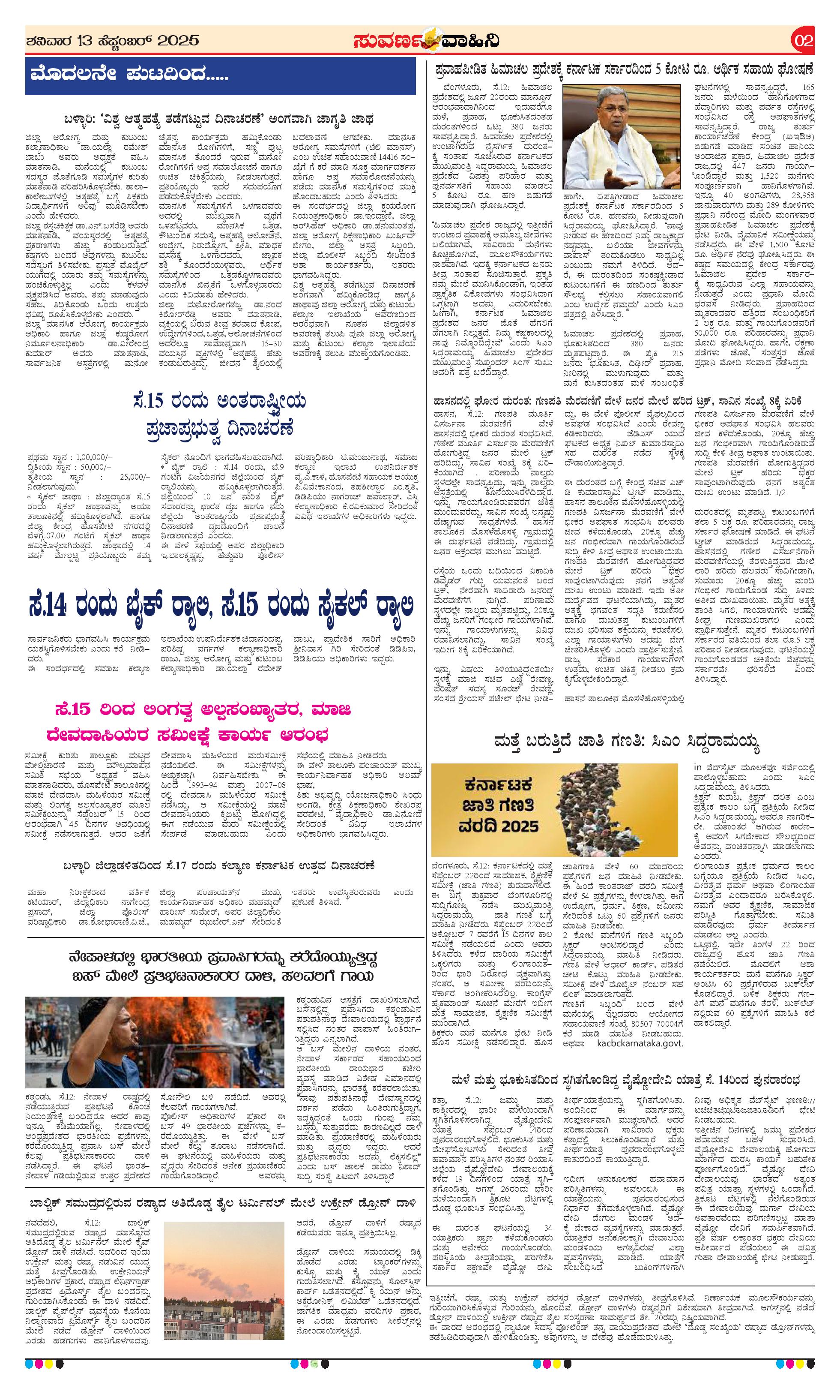 13 Sep 2025 Suvarna Vaahini Page: 2 September 13, 2025 << First << 2 >> Last >> Page 1Page 2Page 3Page 4 × 13 Sep 2025 Suvarna Vaahini page-1page-2page-3page-4 << First << 2 >> Last >> page-1page-2page-3page-4