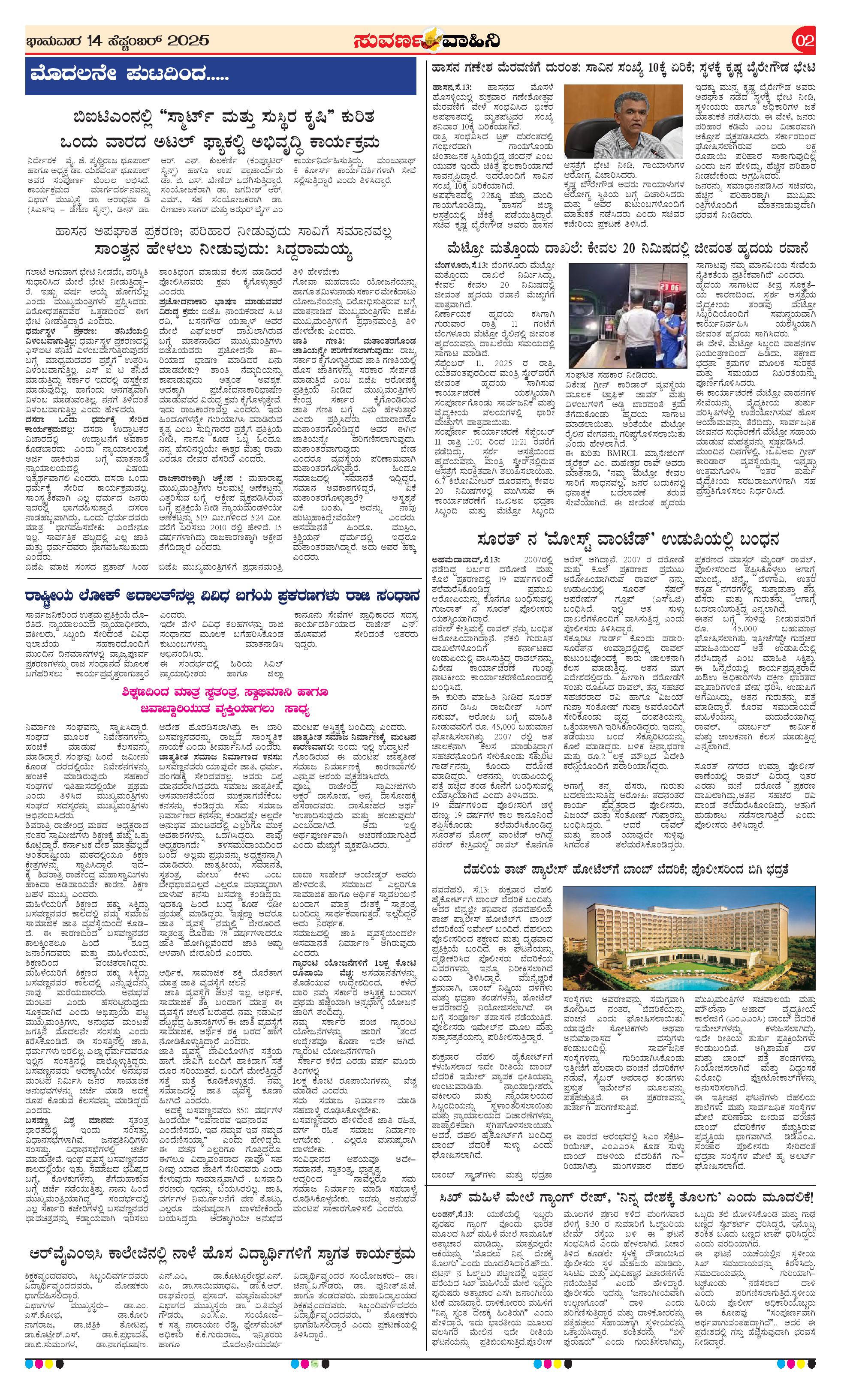14 Sep 2025 Suvarna Vaahini Page: 2 September 14, 2025 << First << 2 >> Last >> Page 1Page 2Page 3Page 4 × 14 Sep 2025 Suvarna Vaahini page-1page-2page-3page-4 << First << 2 >> Last >> page-1page-2page-3page-4