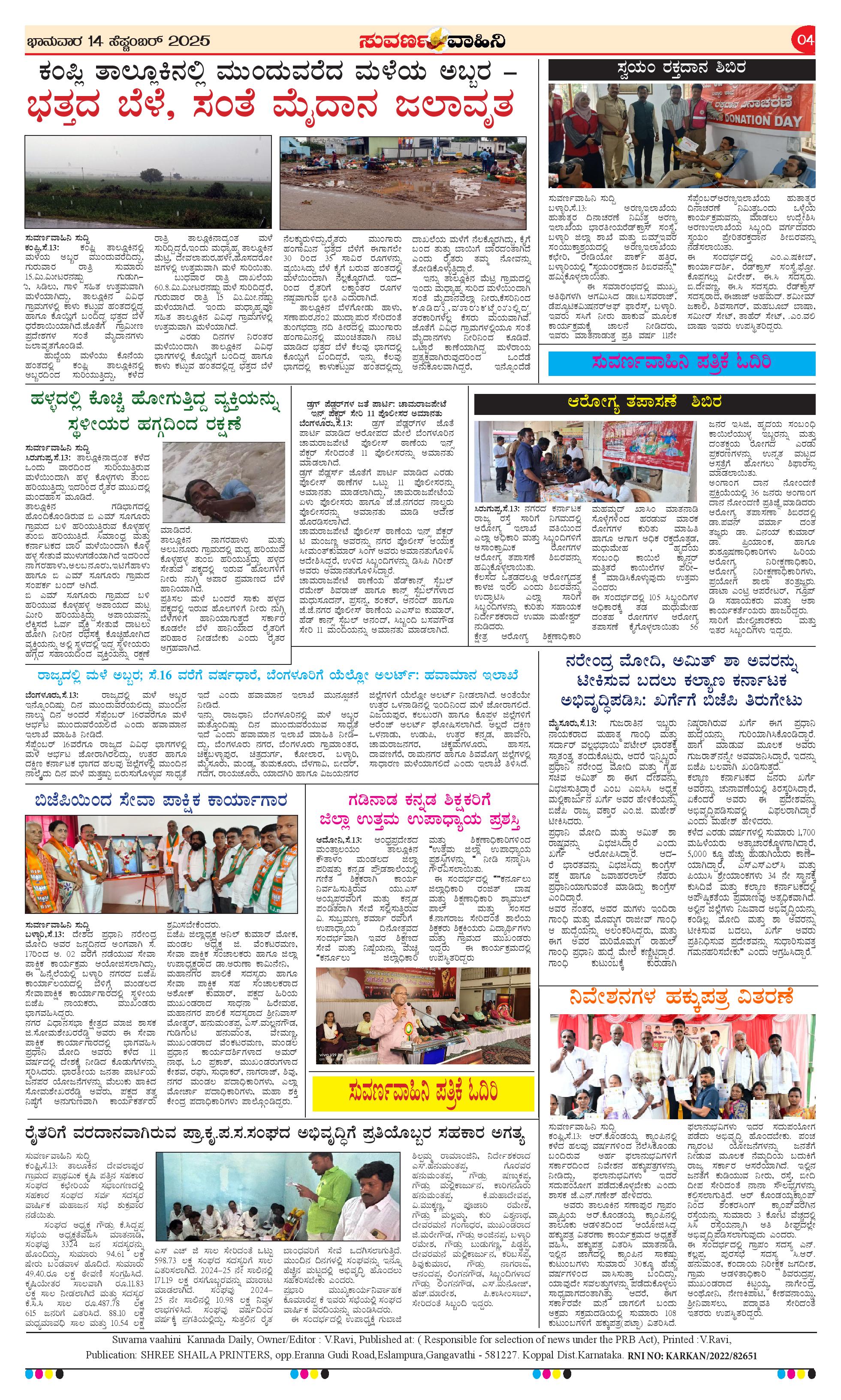 14 Sep 2025 Suvarna Vaahini Page: 4 September 14, 2025 << First << 4 >> Last >> Page 1Page 2Page 3Page 4 × 14 Sep 2025 Suvarna Vaahini page-1page-2page-3page-4 << First << 4 >> Last >> page-1page-2page-3page-4