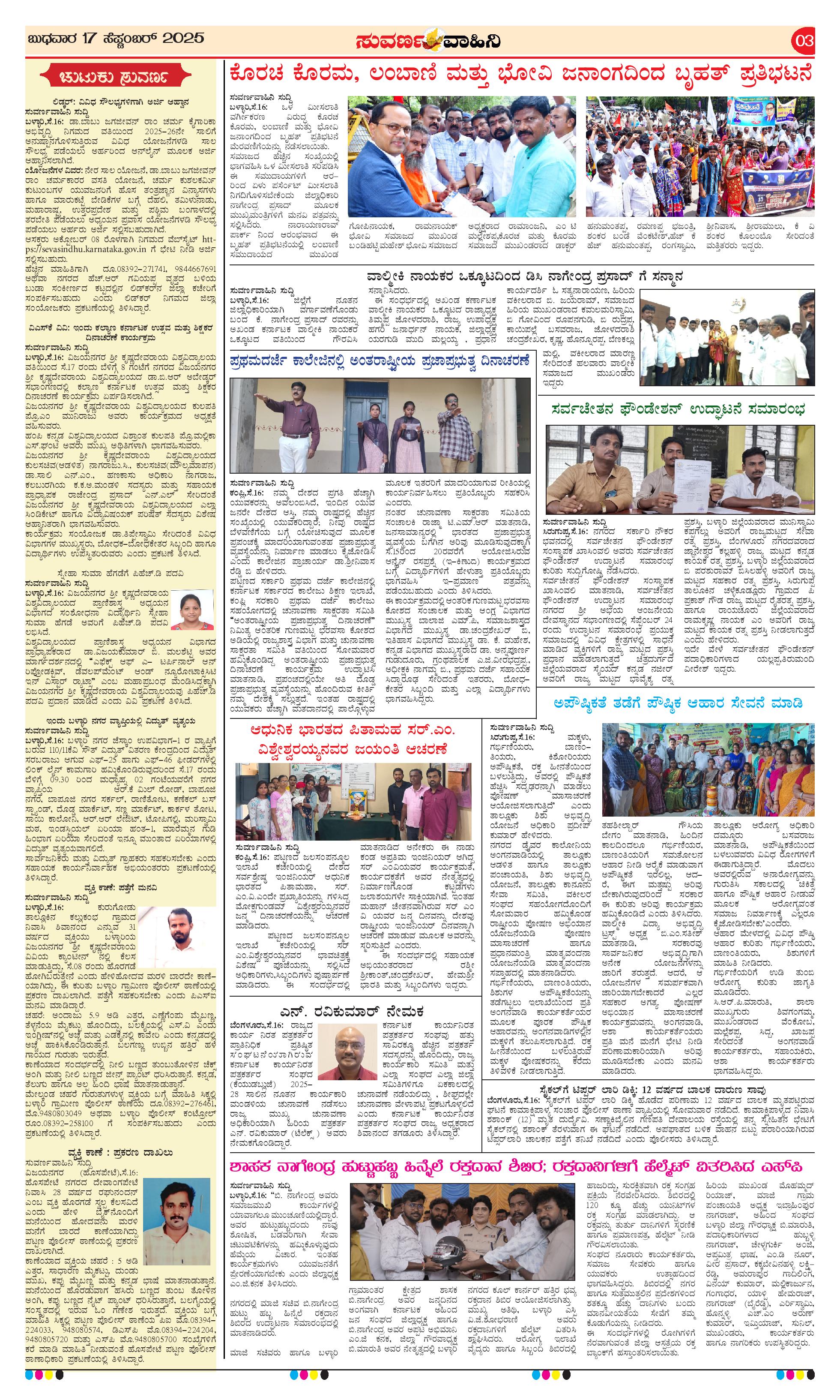 17 Sep 2025 Suvarna Vaahini Page: 3 September 17, 2025 << First << 3 >> Last >> Page 1Page 2Page 3Page 4 × 17 Sep 2025 Suvarna Vaahini page-1page-2page-3page-4 << First << 3 >> Last >> page-1page-2page-3page-4