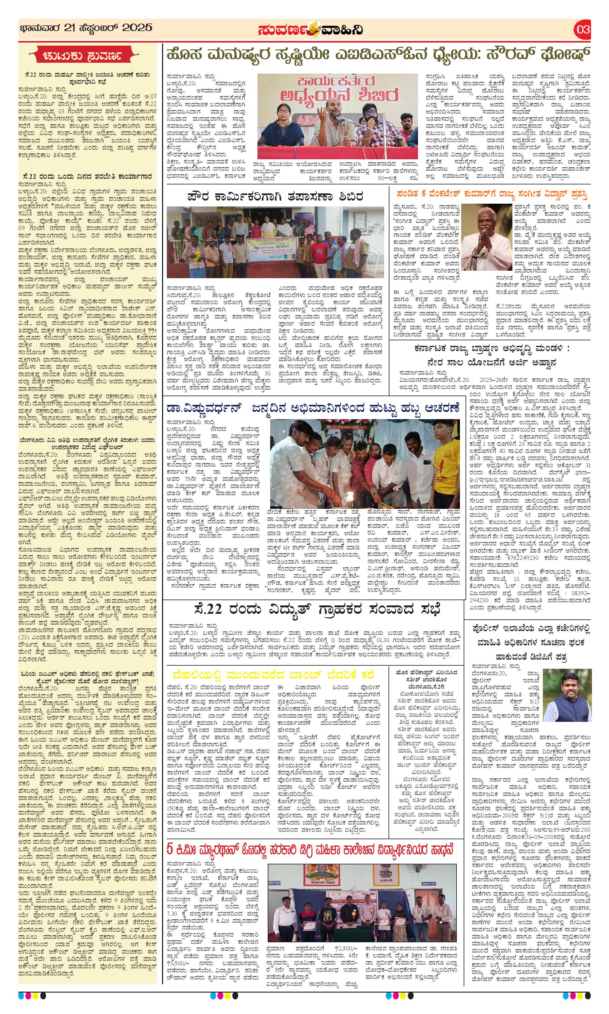 21 Sep 2025 Suvarna Vaahini Page: 3 September 21, 2025 << First << 3 >> Last >> Page 1Page 2Page 3Page 4 × 21 Sep 2025 Suvarna Vaahini page-1page-2page-3page-4 << First << 3 >> Last >> page-1page-2page-3page-4