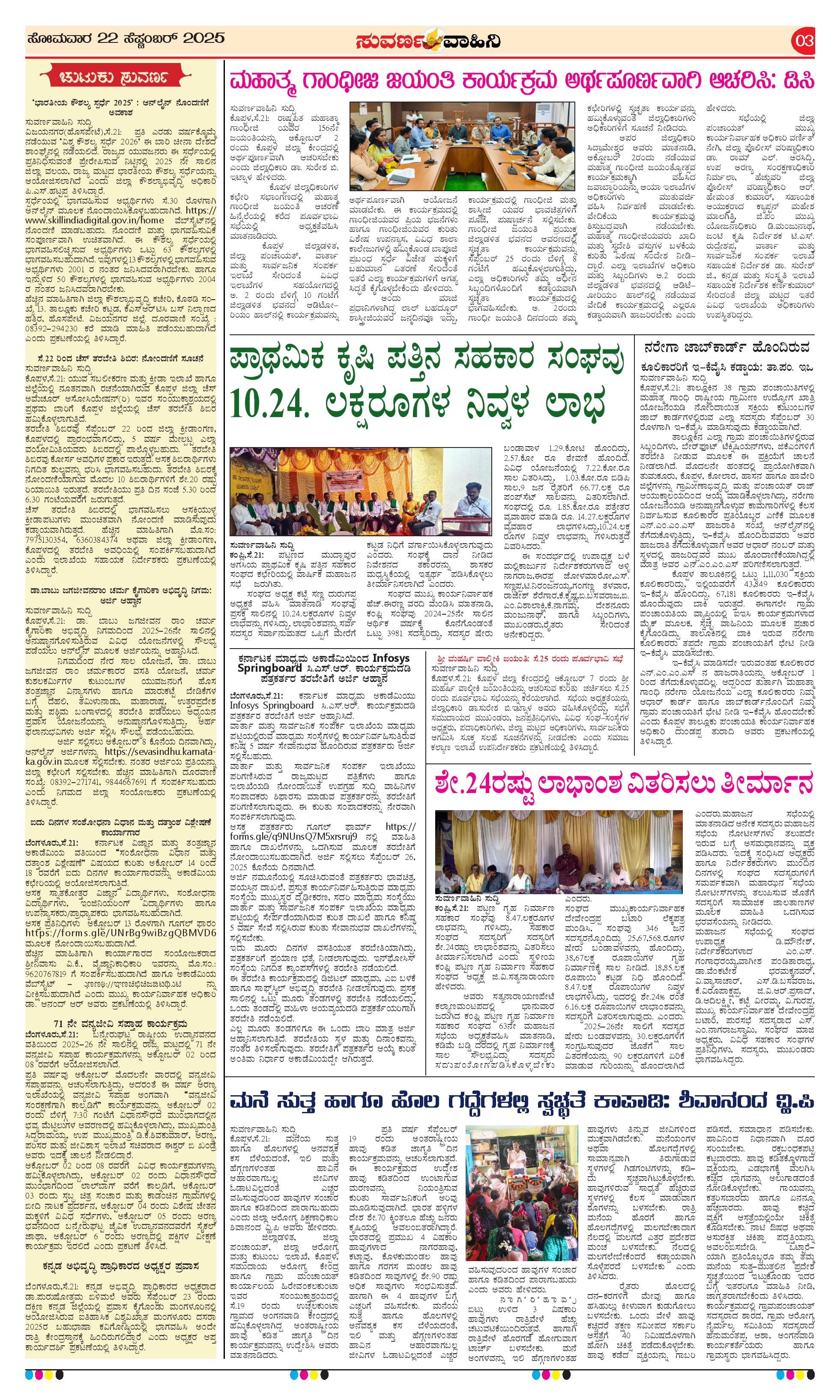 22 Sep 2025 Suvarna Vaahini Page: 3 September 22, 2025 << First << 3 >> Last >> Page 1Page 2Page 3Page 4 × 22 Sep 2025 Suvarna Vaahini page-1page-2page-3page-4 << First << 3 >> Last >> page-1page-2page-3page-4