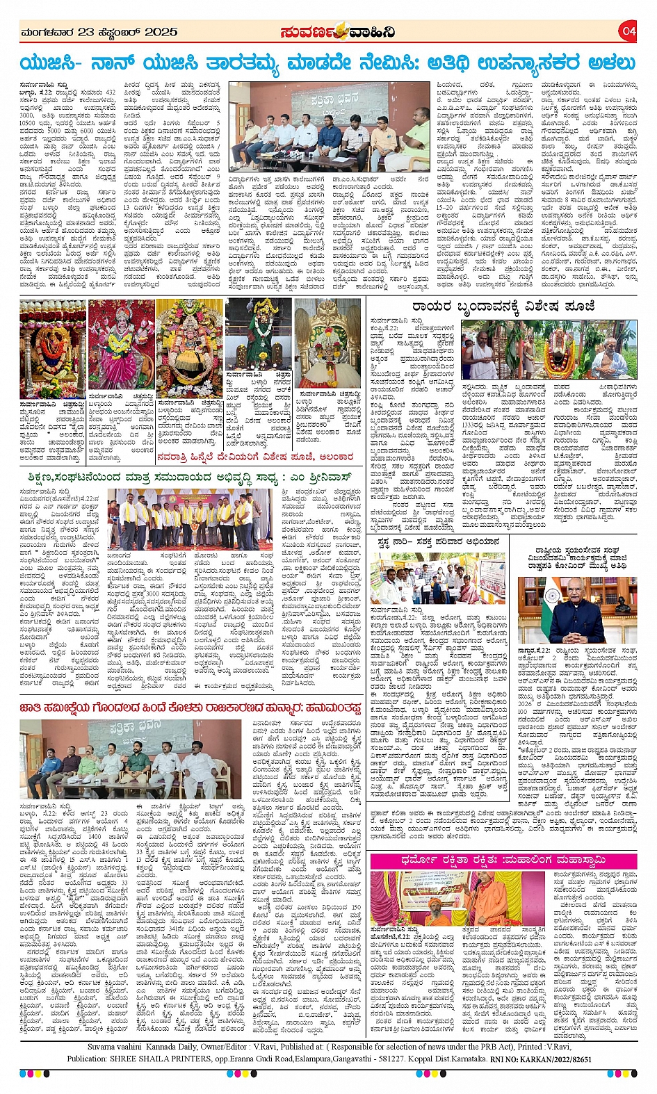 23 Sep 2025 Suvarna Vaahini Page: 4 September 23, 2025 << First << 4 >> Last >> Page 1Page 2Page 3Page 4 × 23 Sep 2025 Suvarna Vaahini page-1page-2page-3page-4 << First << 4 >> Last >> page-1page-2page-3page-4