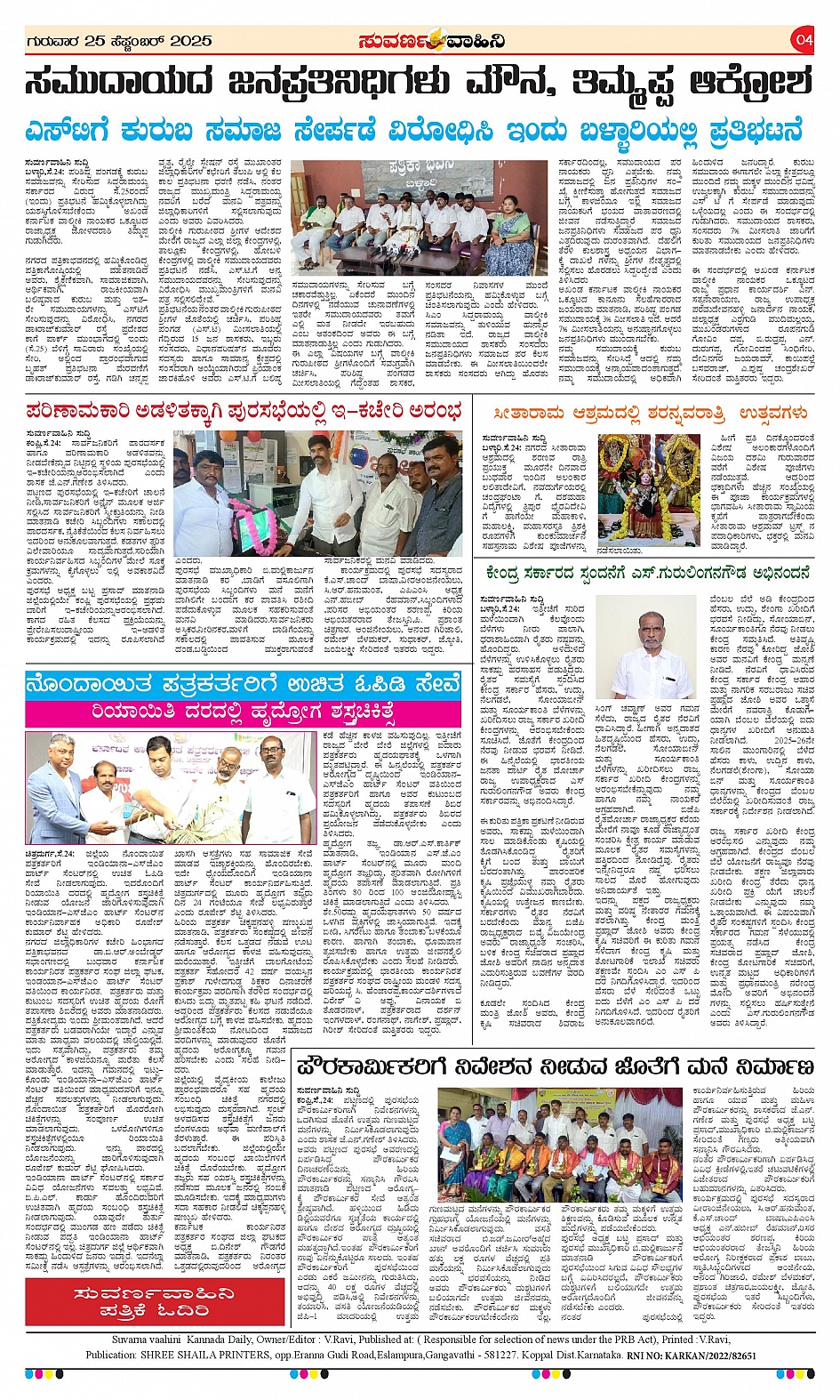 25 Sep 2025 Suvarna Vaahini Page: 4 September 25, 2025 << First << 4 >> Last >> Page 1Page 2Page 3Page 4 × 25 Sep 2025 Suvarna Vaahini page-1page-2page-3page-4 << First << 4 >> Last >> page-1page-2page-3page-4