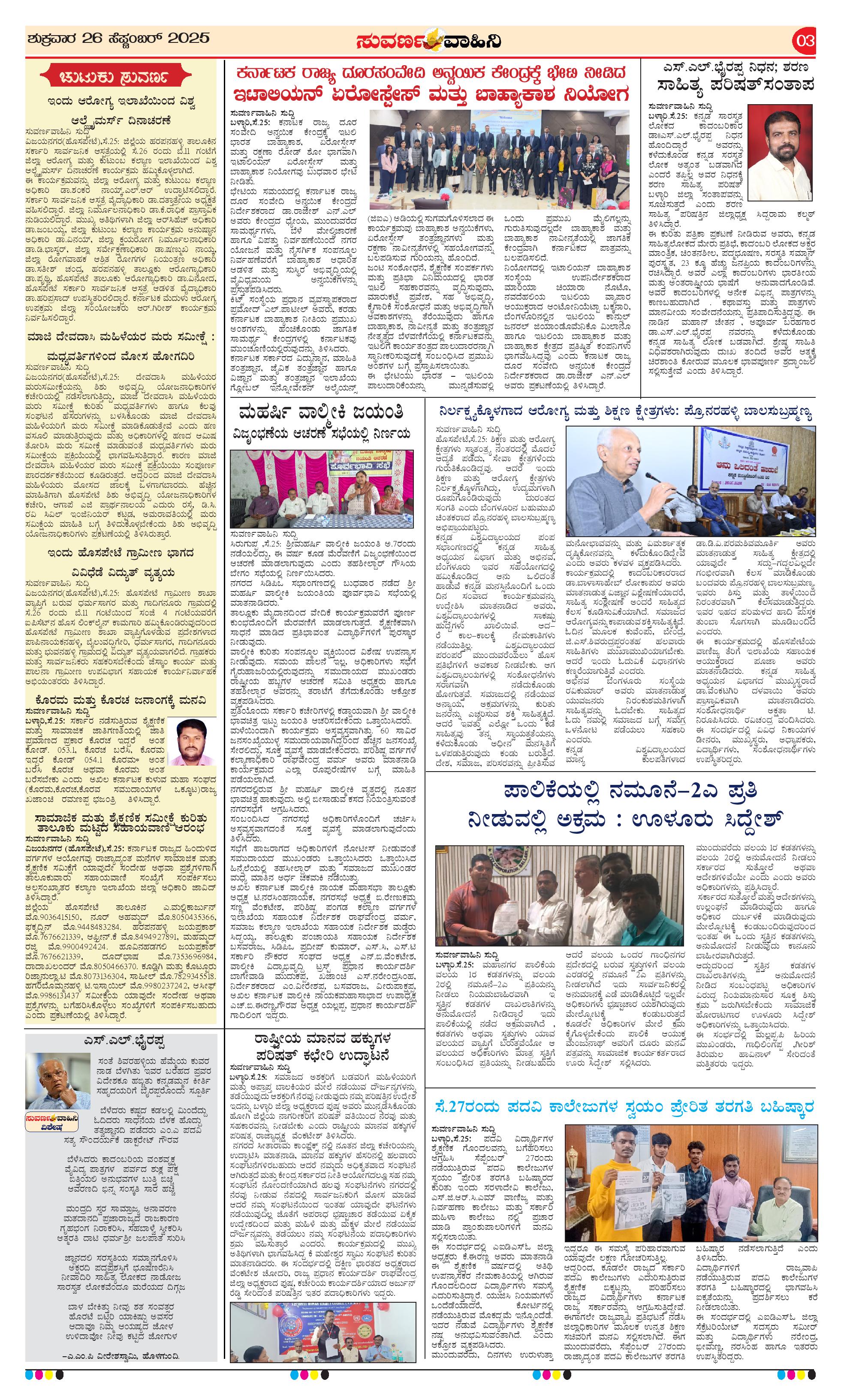 26 Sep 2025 Suvarna Vaahini Page: 3 September 26, 2025 << First << 3 >> Last >> Page 1Page 2Page 3Page 4 × 26 Sep 2025 Suvarna Vaahini page-1page-2page-3page-4 << First << 3 >> Last >> page-1page-2page-3page-4