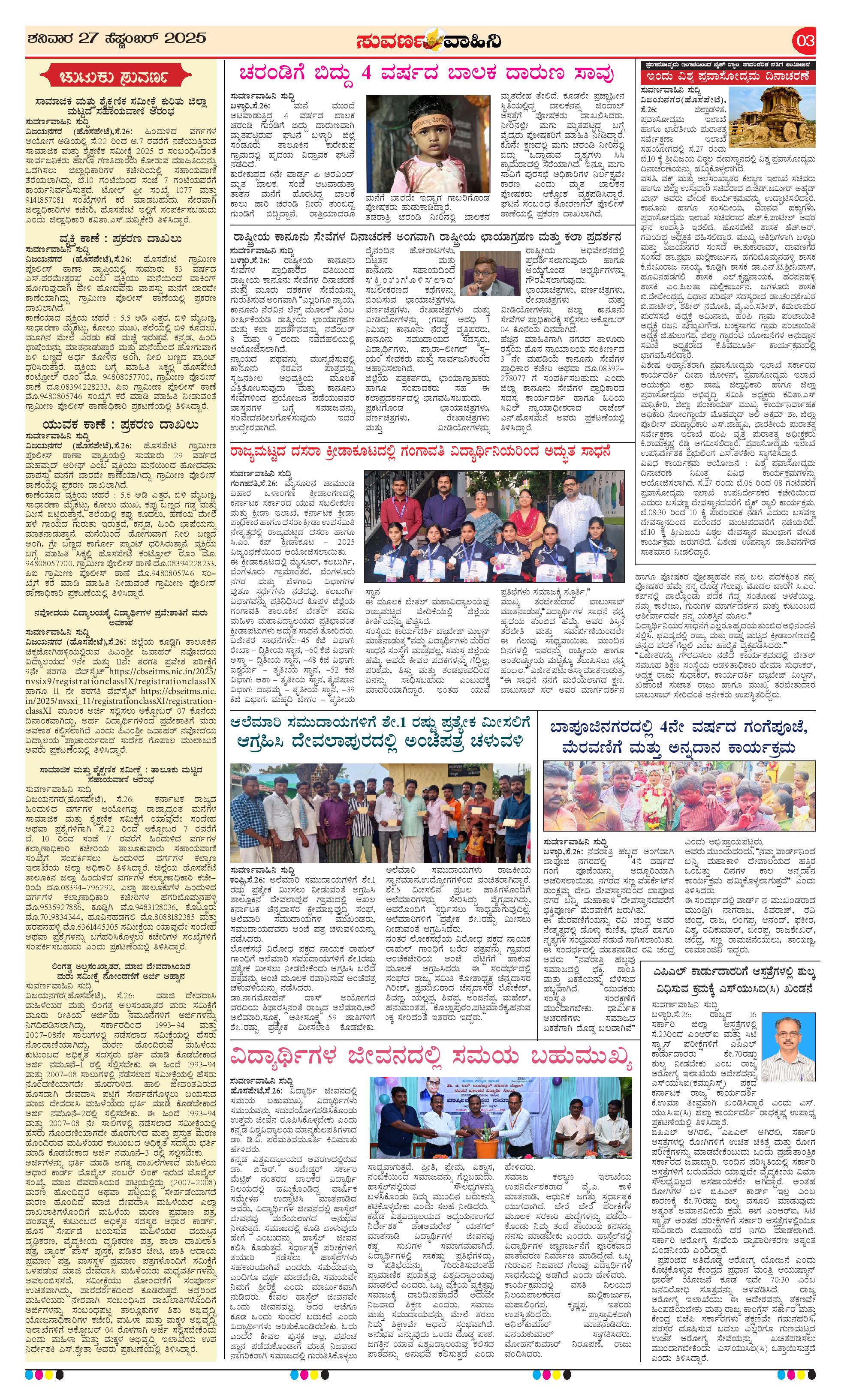 27 Sep 2025 Suvarna Vaahini Page: 3 September 27, 2025 << First << 3 >> Last >> Page 1Page 2Page 3Page 4 × 27 Sep 2025 Suvarna Vaahini page-1page-2page-3page-4 << First << 3 >> Last >> page-1page-2page-3page-4
