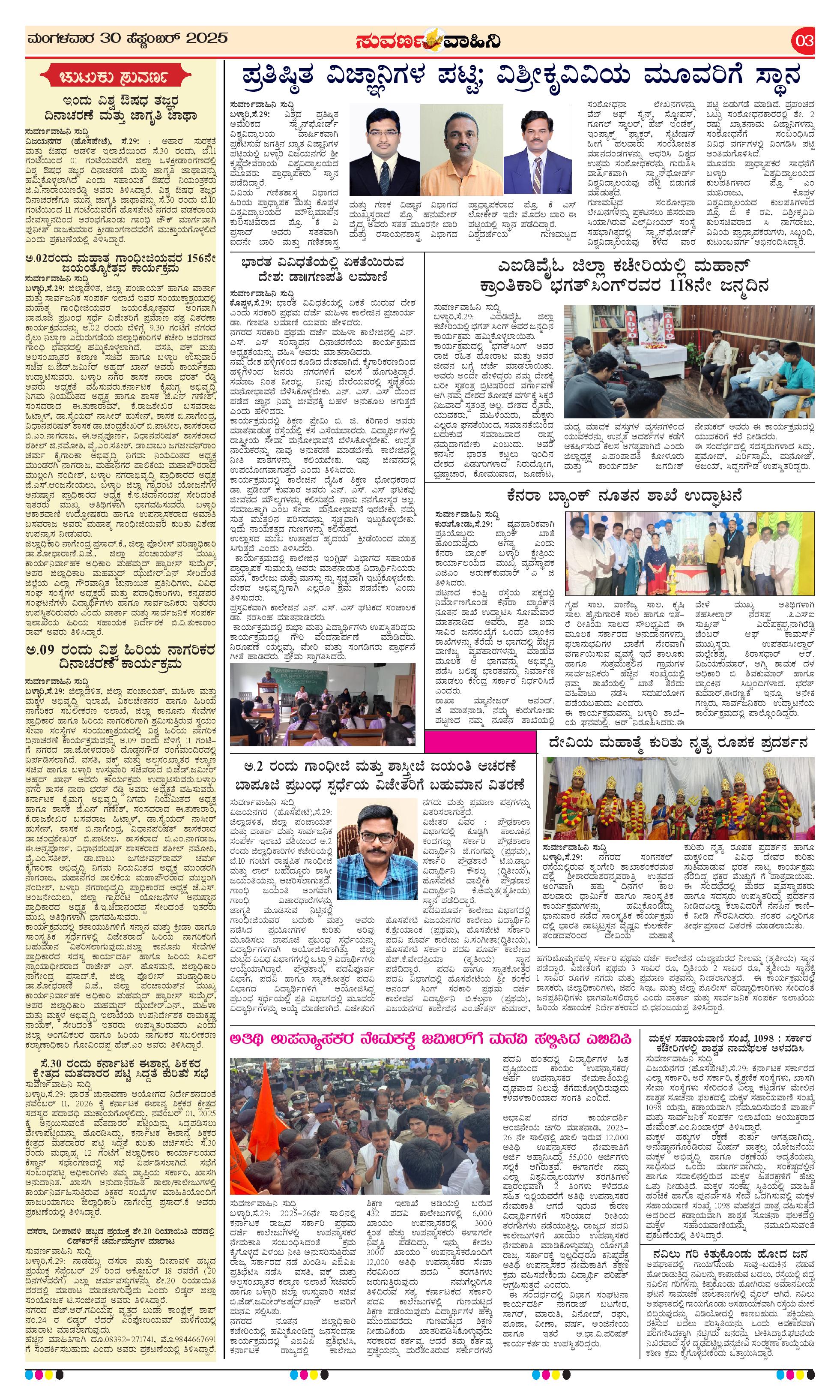 30 Sep 2025 Suvarna Vaahini Page: 3 September 30, 2025 << First << 3 >> Last >> Page 1Page 2Page 3Page 4 × 30 Sep 2025 Suvarna Vaahini page-1page-2page-3page-4 << First << 3 >> Last >> page-1page-2page-3page-4