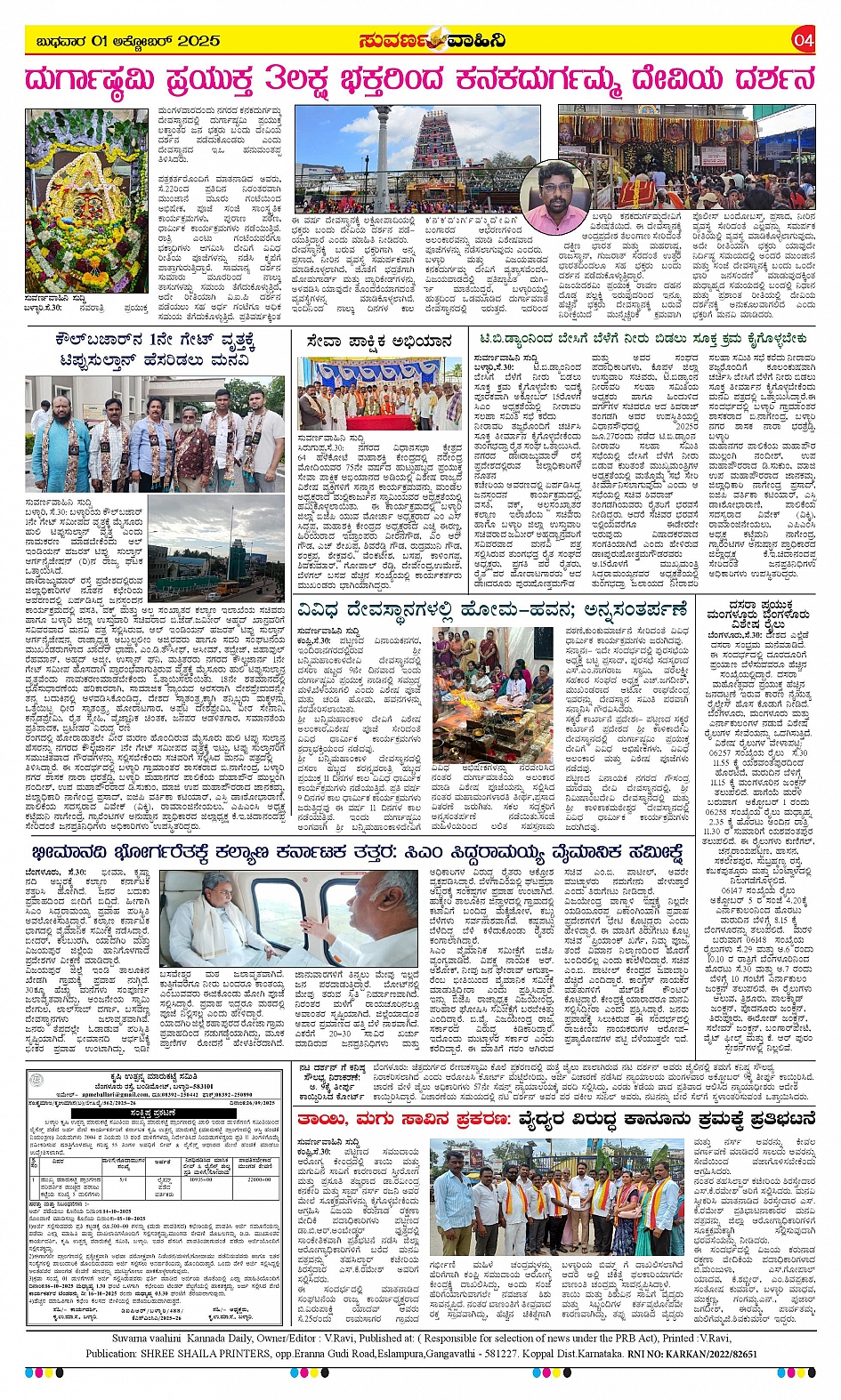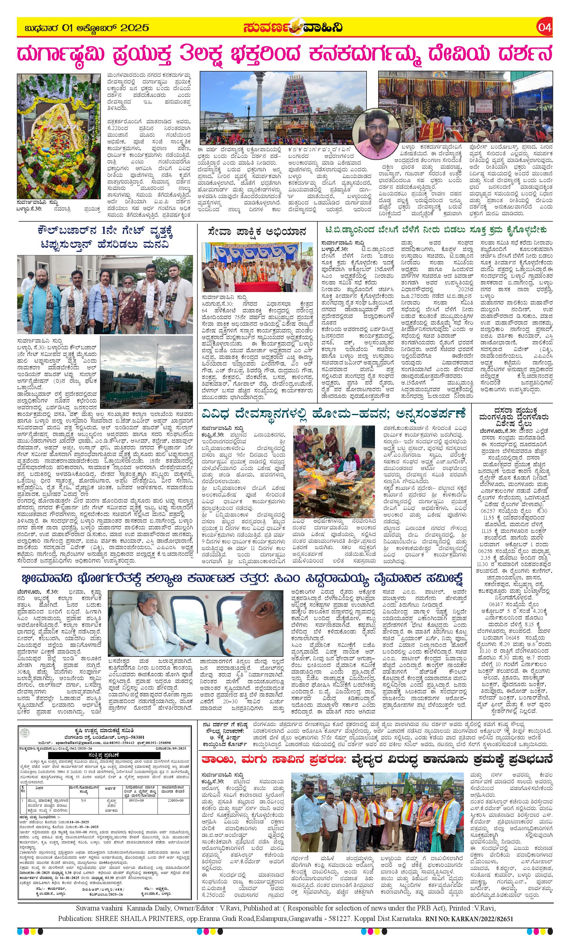 01 ಅಕ್ಟೋಬರ್ 2025 Suvarna Vaahini Page: 4 October 01, 2025 << First << 4 >> Last >> Page 1Page 2Page 3Page 4 × 01 ಅಕ್ಟೋಬರ್ 2025 Suvarna Vaahini page-1page-2page-3page-4 << First << 4 >> Last >> page-1page-2page-3page-4