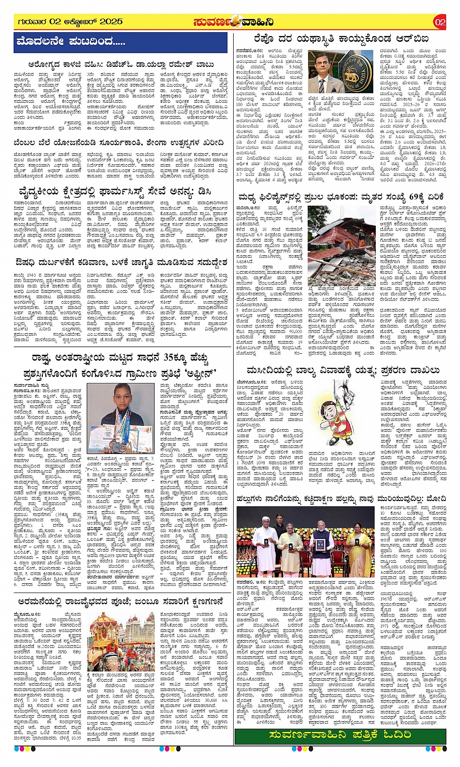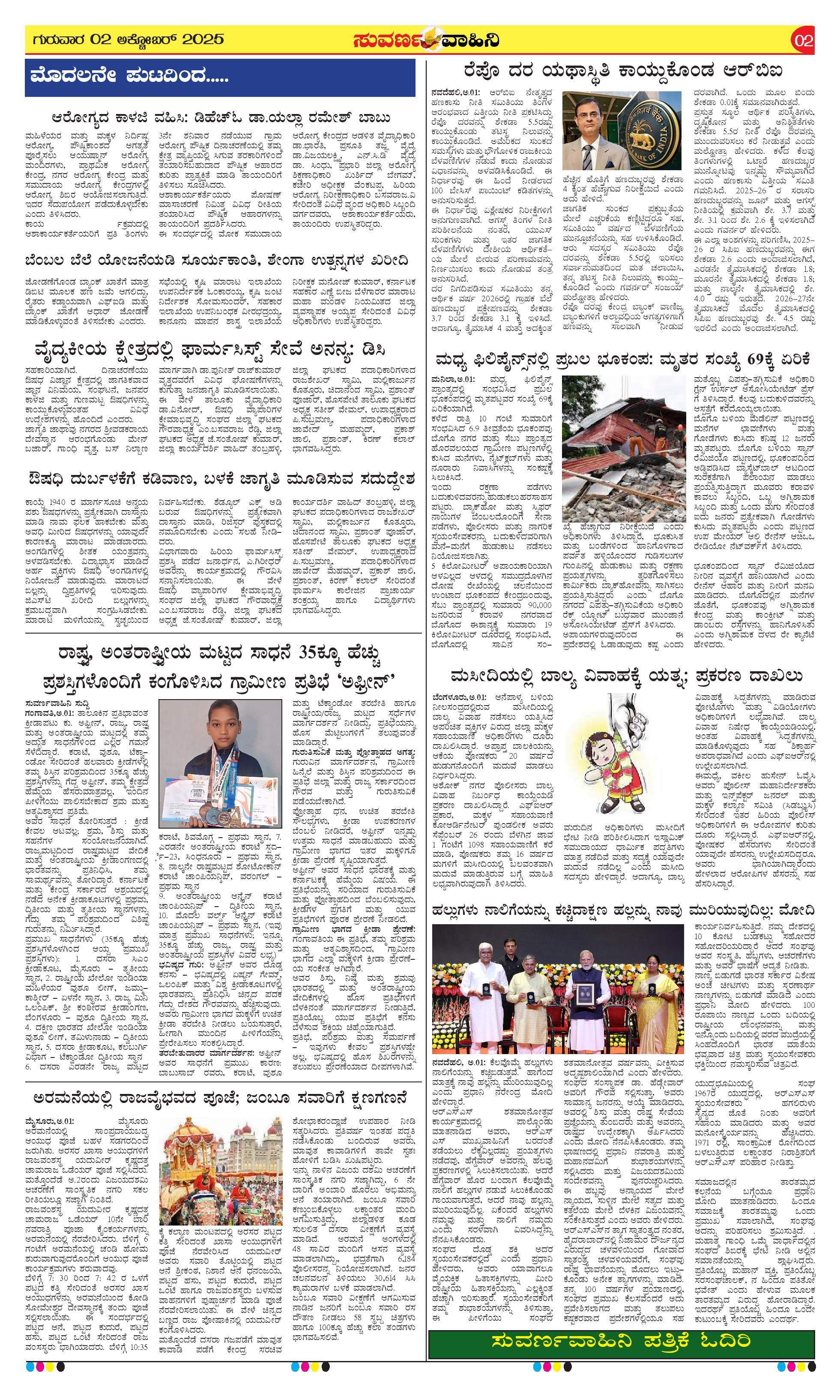 02 ಅಕ್ಟೋಬರ್ 2025 Suvarna Vaahini Page: 2 October 02, 2025 << First << 2 >> Last >> Page 1Page 2Page 3Page 4 × 02 ಅಕ್ಟೋಬರ್ 2025 Suvarna Vaahini page-1page-2page-3page-4 << First << 2 >> Last >> page-1page-2page-3page-4
