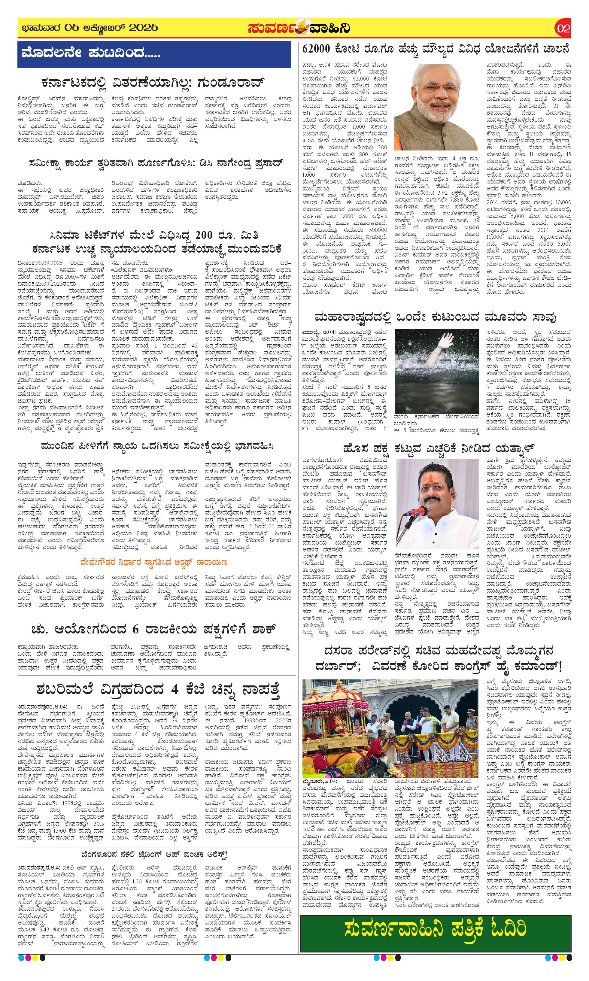 05 ಅಕ್ಟೋಬರ್ 2025 Suvarna Vaahini Page: 2 October 05, 2025 << First << 2 >> Last >> Page 1Page 2Page 3Page 4 × 05 ಅಕ್ಟೋಬರ್ 2025 Suvarna Vaahini page-1page-2page-3page-4 << First << 2 >> Last >> page-1page-2page-3page-4