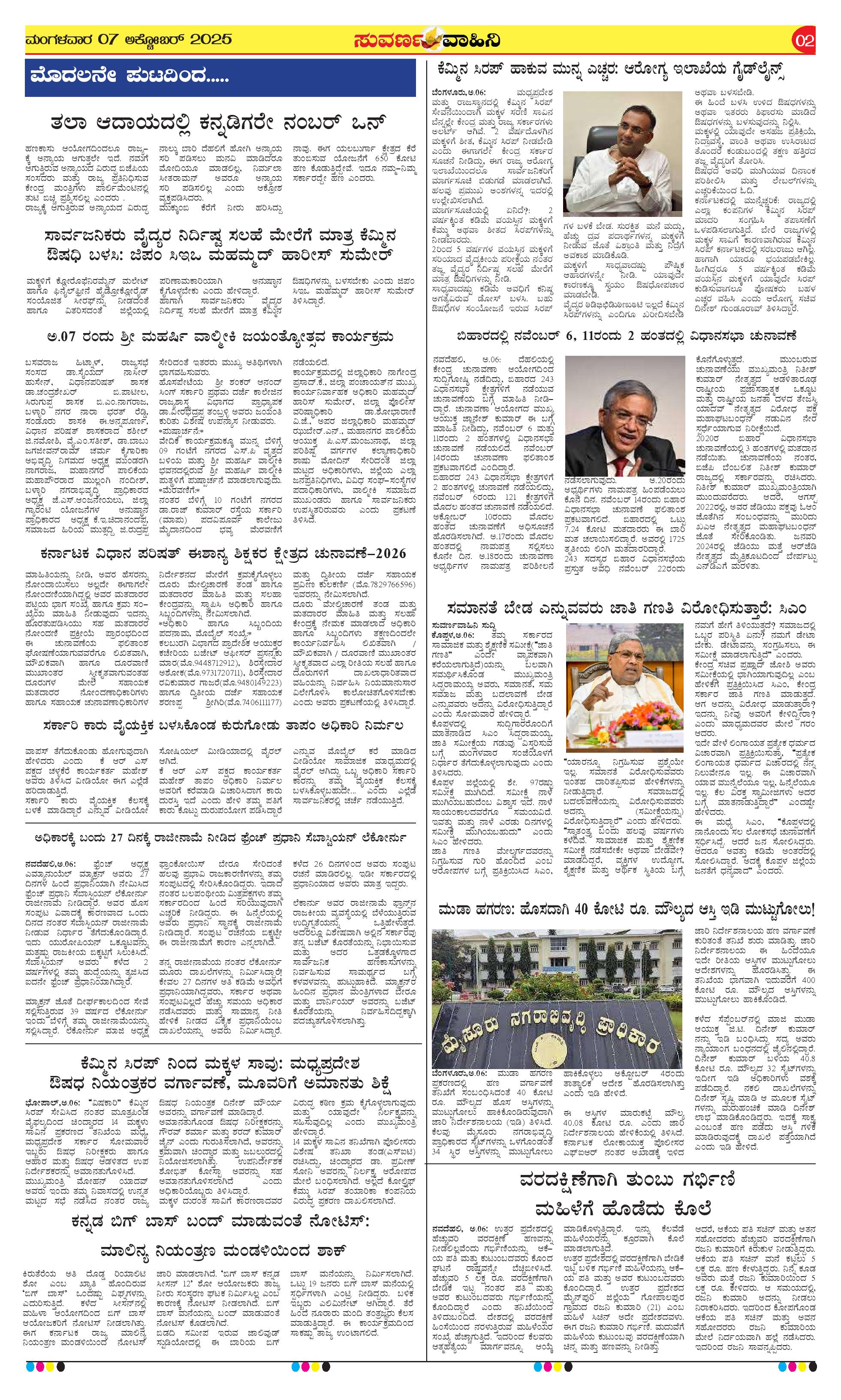 07 ಅಕ್ಟೋಬರ್ 2025 Suvarna Vaahini Page: 2 October 07, 2025 << First << 2 >> Last >> Page 1Page 2Page 3Page 4 × 07 ಅಕ್ಟೋಬರ್ 2025 Suvarna Vaahini page-1page-2page-3page-4 << First << 2 >> Last >> page-1page-2page-3page-4