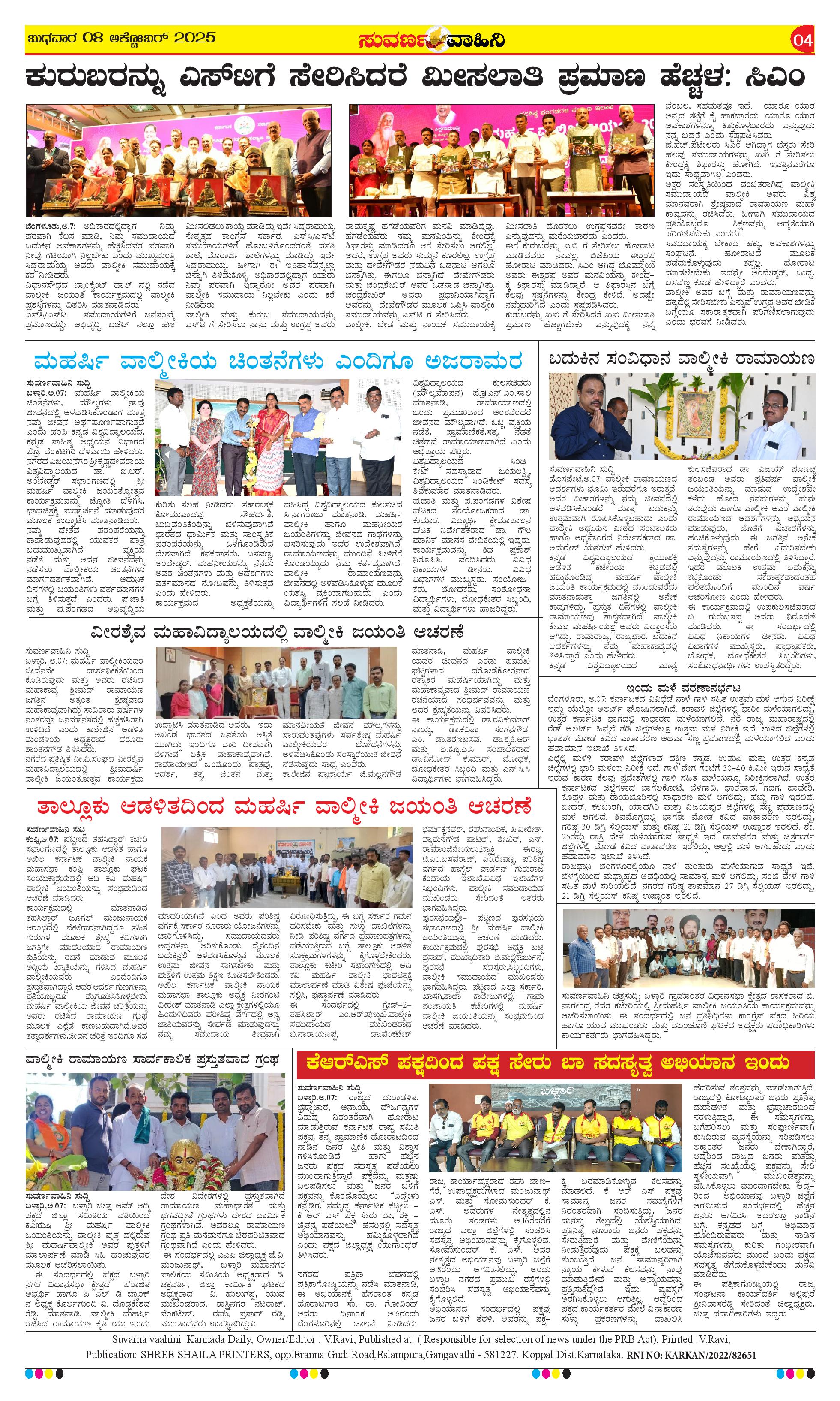 08 ಅಕ್ಟೋಬರ್ 2025 Suvarna Vaahini Page: 4 October 08, 2025 << First << 4 >> Last >> Page 1Page 2Page 3Page 4 × 08 ಅಕ್ಟೋಬರ್ 2025 Suvarna Vaahini page-1page-2page-3page-4 << First << 4 >> Last >> page-1page-2page-3page-4