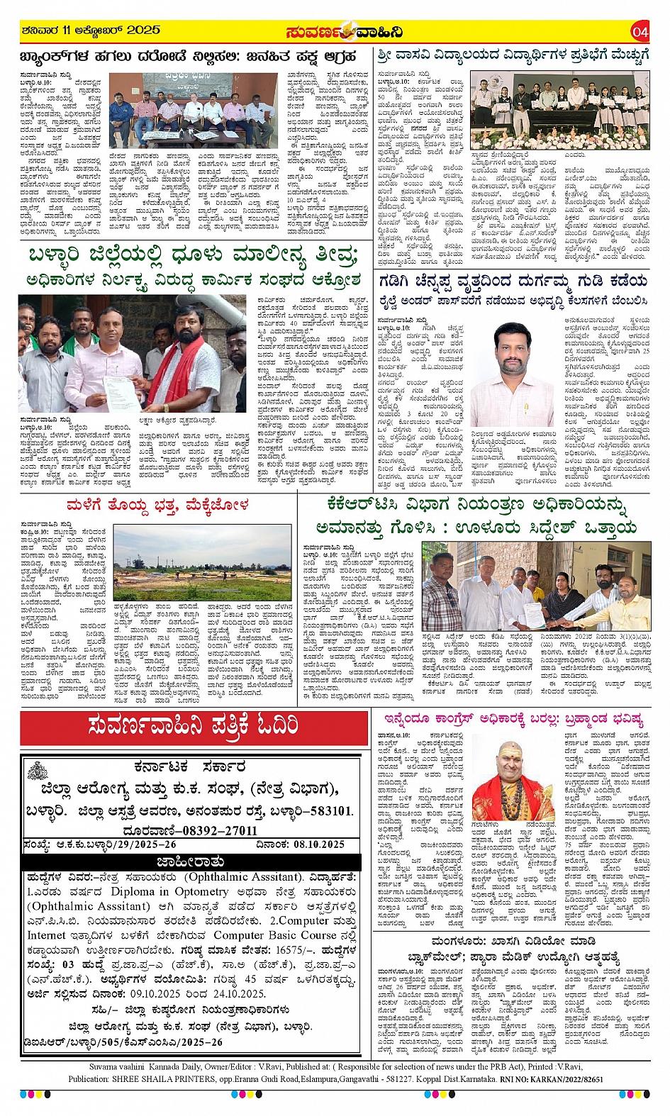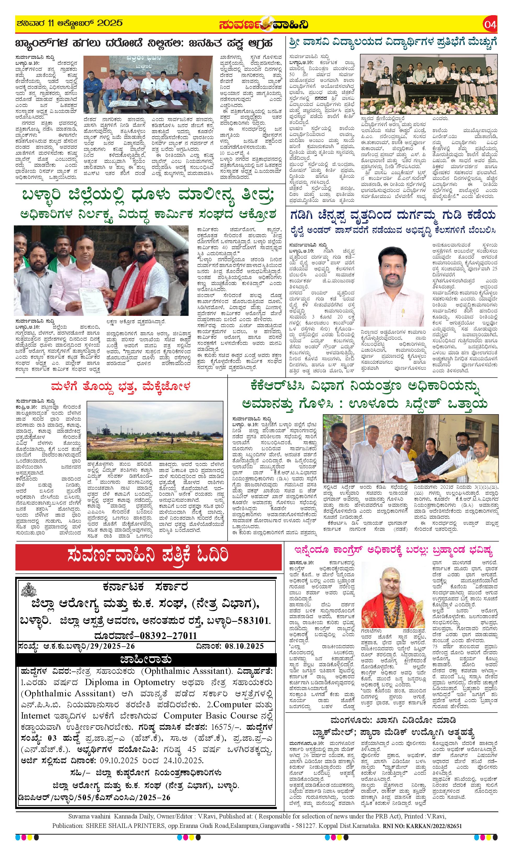 11 ಅಕ್ಟೋಬರ್ 2025 Suvarna Vaahini Page: 4 October 11, 2025 << First << 4 >> Last >> Page 1Page 2Page 3Page 4 × 11 ಅಕ್ಟೋಬರ್ 2025 Suvarna Vaahini page-1page-2page-3page-4 << First << 4 >> Last >> page-1page-2page-3page-4