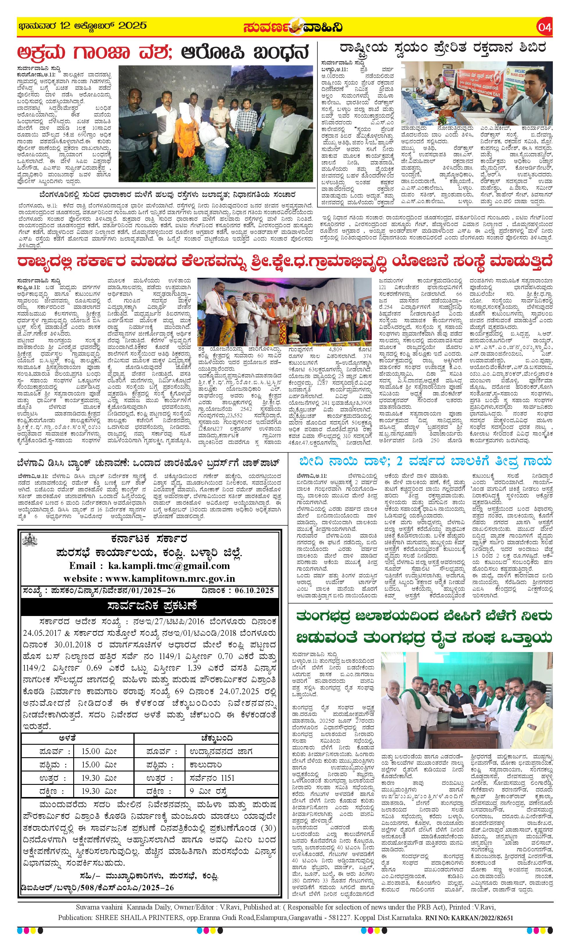 12 ಅಕ್ಟೋಬರ್ 2025 Suvarna Vaahini Page: 4 October 12, 2025 << First << 4 >> Last >> Page 1Page 2Page 3Page 4 × 12 ಅಕ್ಟೋಬರ್ 2025 Suvarna Vaahini page-1page-2page-3page-4 << First << 4 >> Last >> page-1page-2page-3page-4