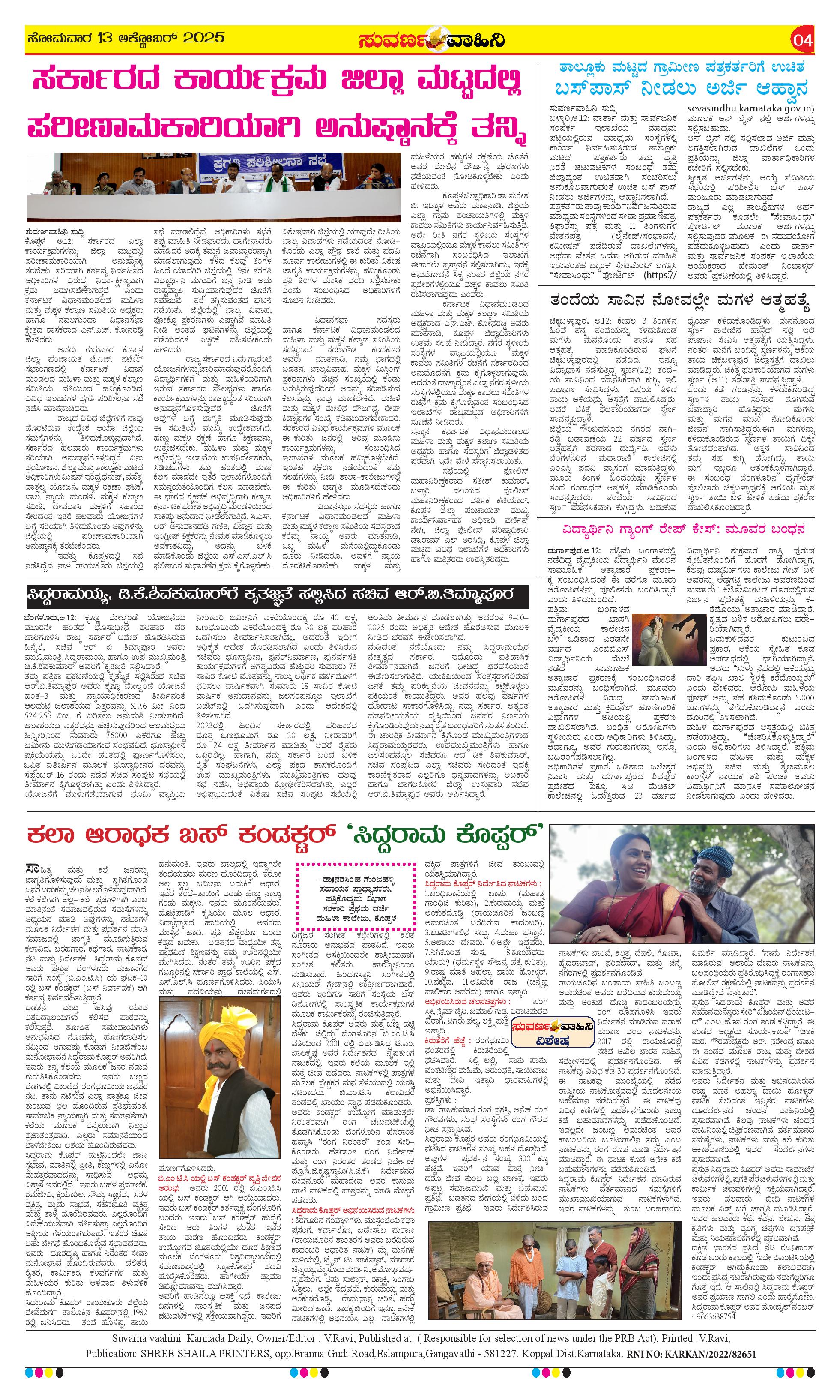 13 ಅಕ್ಟೋಬರ್ 2025 Suvarna Vaahini Page: 4 October 13, 2025 << First << 4 >> Last >> Page 1Page 2Page 3Page 4 × 13 ಅಕ್ಟೋಬರ್ 2025 Suvarna Vaahini page-1page-2page-3page-4 << First << 4 >> Last >> page-1page-2page-3page-4