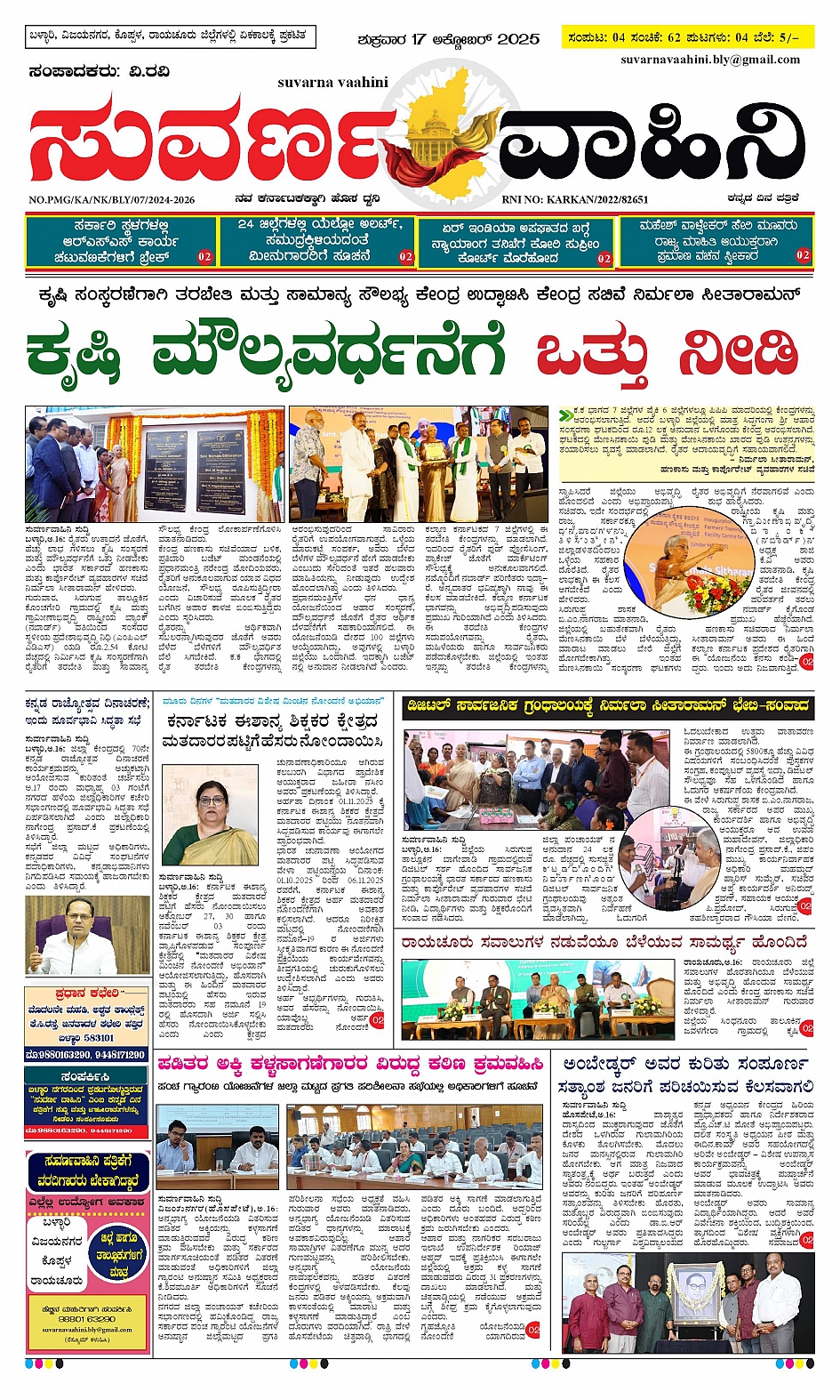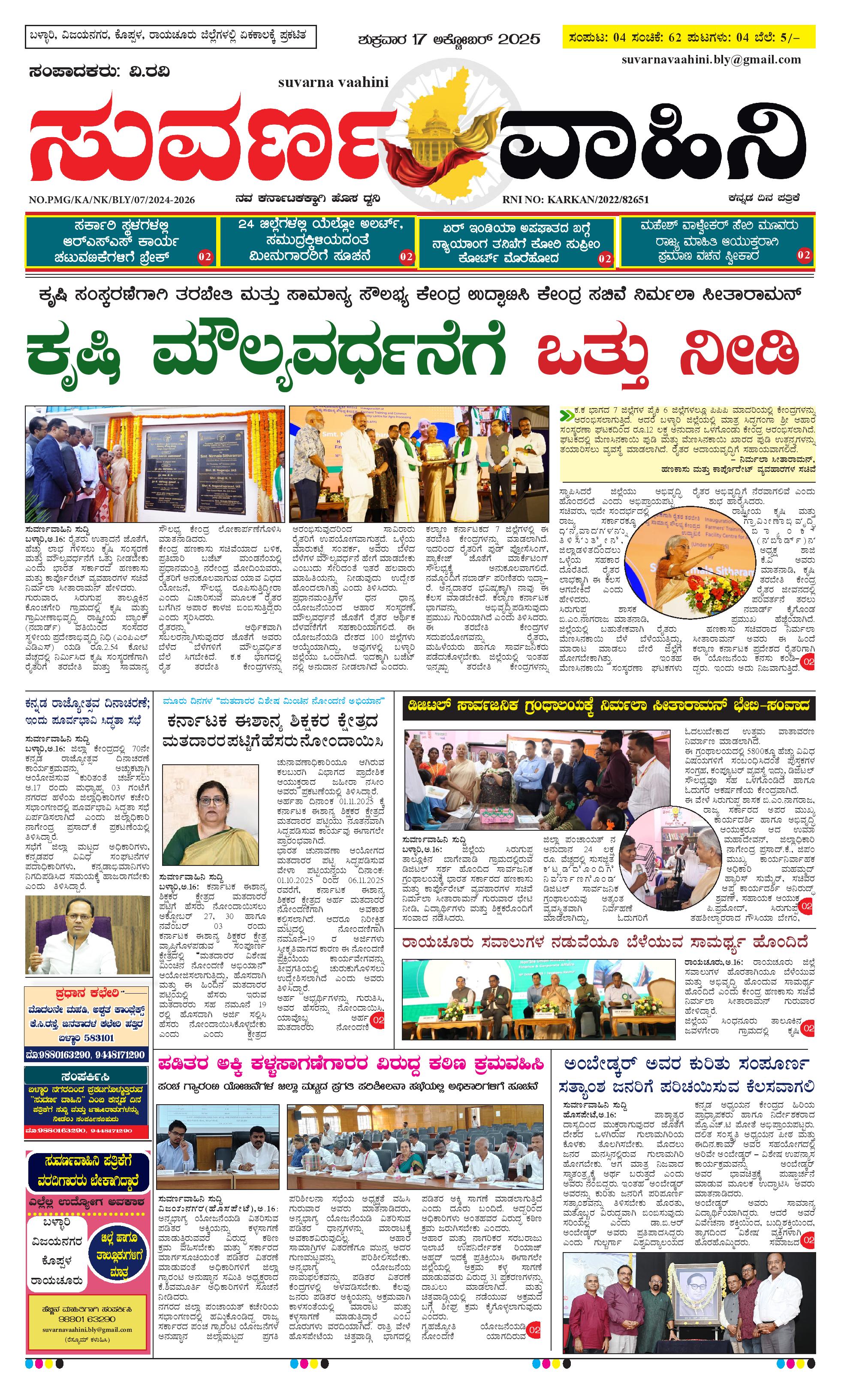 17 ಅಕ್ಟೋಬರ್ 2025 Suvarna Vaahini October 17, 2025 << First << 1 >> Last >> Page 1Page 2Page 3Page 4 × 17 ಅಕ್ಟೋಬರ್ 2025 Suvarna Vaahini page-1page-2page-3page-4 << First << 1 >> Last >> page-1page-2page-3page-4