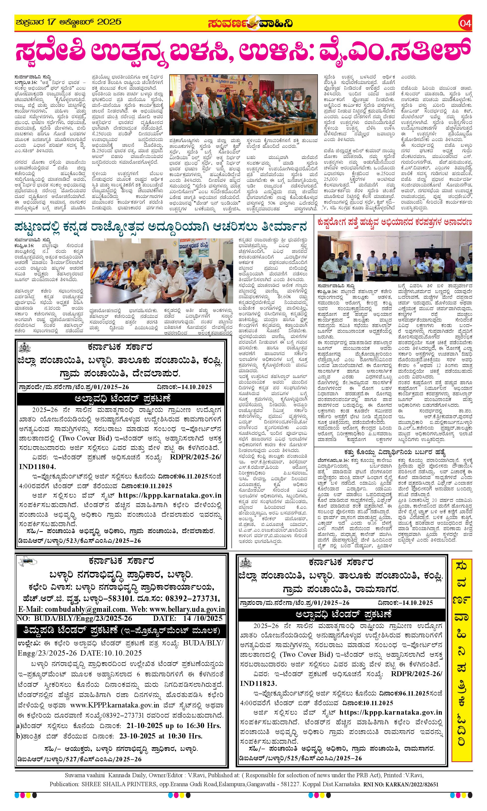 17 ಅಕ್ಟೋಬರ್ 2025 Suvarna Vaahini Page: 4 October 17, 2025 << First << 4 >> Last >> Page 1Page 2Page 3Page 4 × 17 ಅಕ್ಟೋಬರ್ 2025 Suvarna Vaahini page-1page-2page-3page-4 << First << 4 >> Last >> page-1page-2page-3page-4