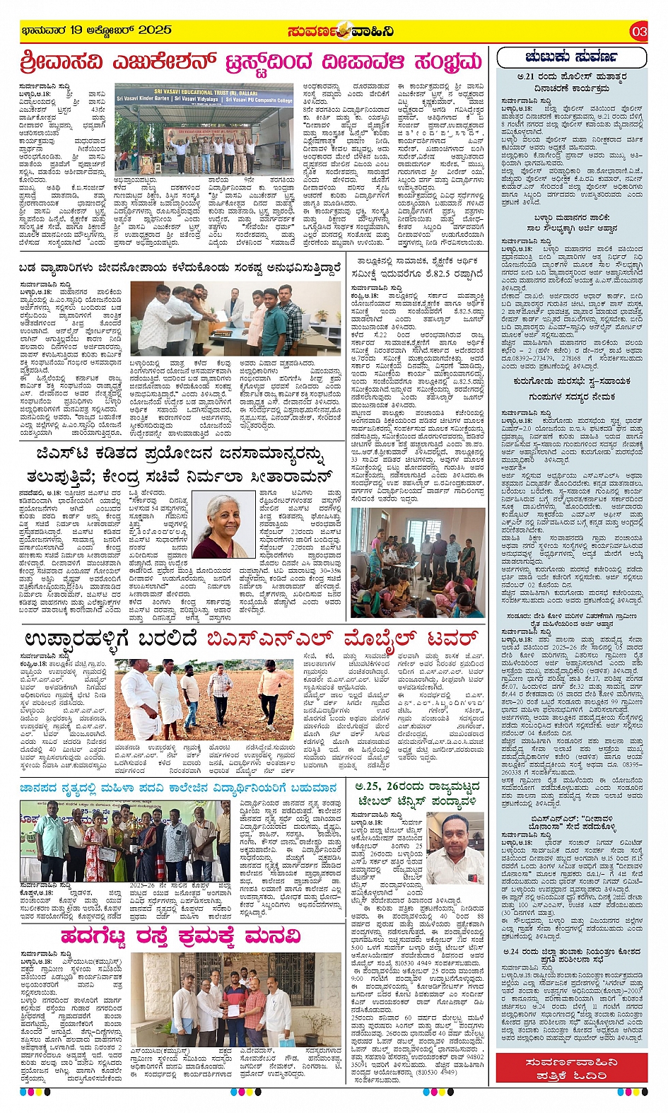 19 ಅಕ್ಟೋಬರ್ 2025 Suvarna Vaahini Page: 3 October 19, 2025 << First << 3 >> Last >> Page 1Page 2Page 3Page 4 × 19 ಅಕ್ಟೋಬರ್ 2025 Suvarna Vaahini page-1page-2page-3page-4 << First << 3 >> Last >> page-1page-2page-3page-4