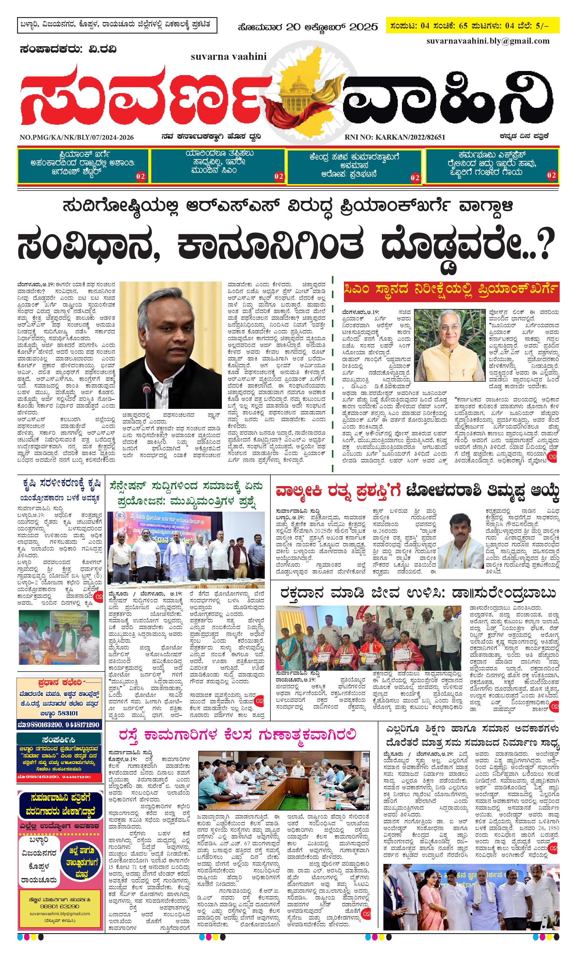 20 ಅಕ್ಟೋಬರ್ 2025 Suvarna Vaahini