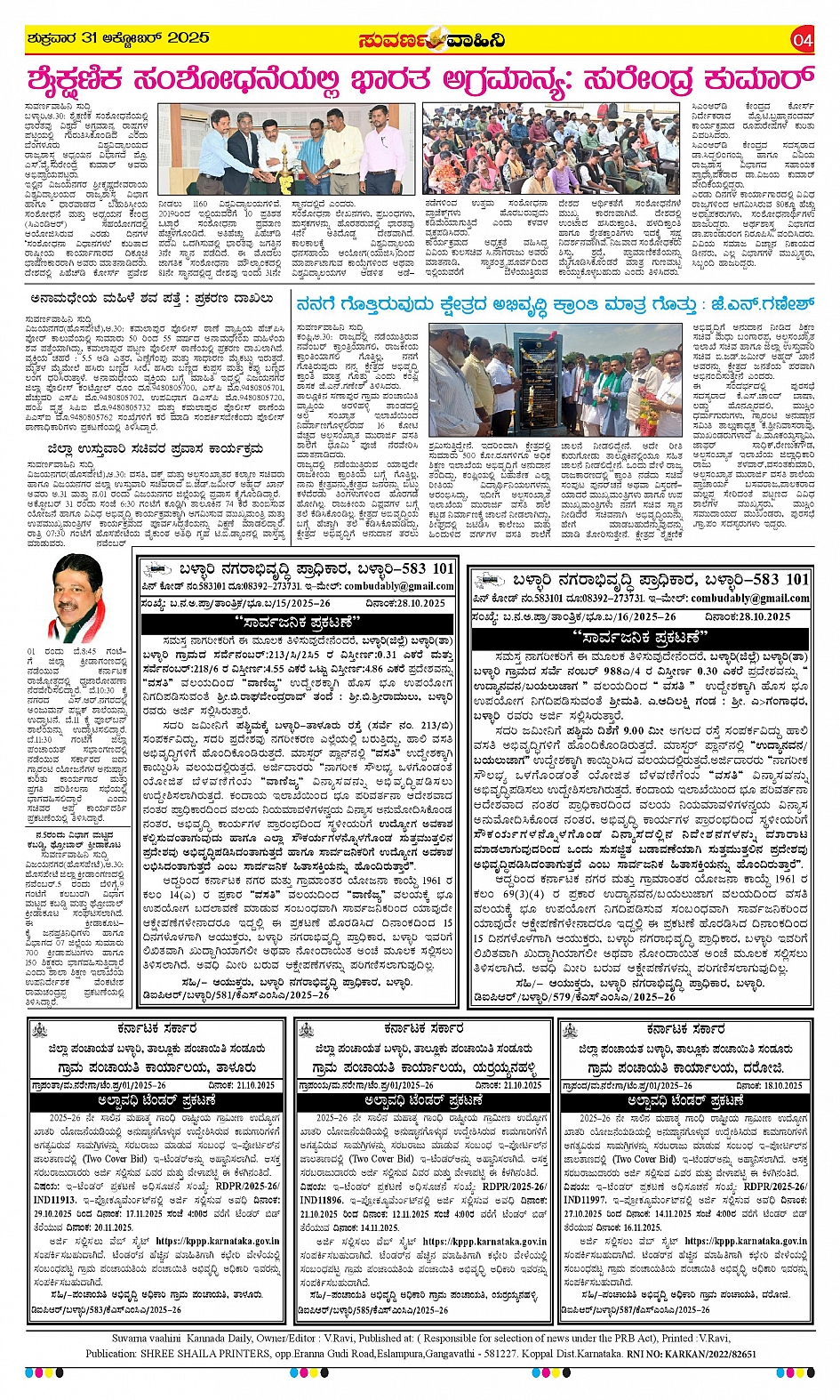 31 ಅಕ್ಟೋಬರ್ 2025 Suvarna Vaahini Page: 4 October 31, 2025 << First << 4 >> Last >> Page 1Page 2Page 3Page 4 × 31 ಅಕ್ಟೋಬರ್ 2025 Suvarna Vaahini page-1page-2page-3page-4 << First << 4 >> Last >> page-1page-2page-3page-4