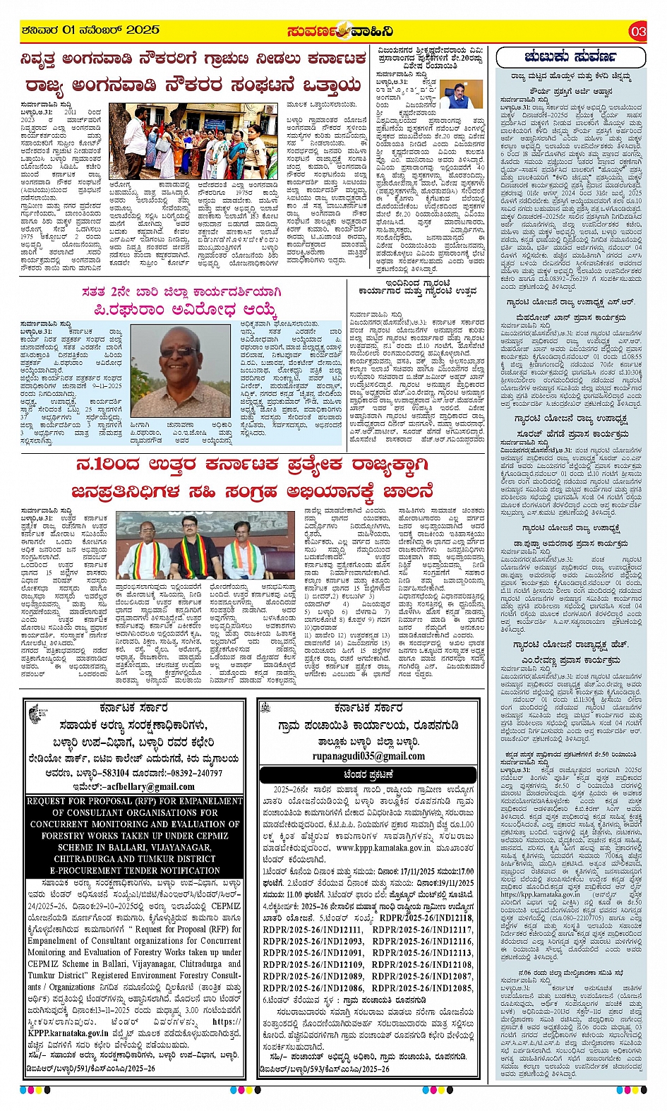 01 ನವೆಂಬರ್ 2025 Suvarna Vaahini Page: 3 November 01, 2025 << First << 3 >> Last >> Page 1Page 2Page 3Page 4 × 01 ನವೆಂಬರ್ 2025 Suvarna Vaahini page-1page-2page-3page-4 << First << 3 >> Last >> page-1page-2page-3page-4