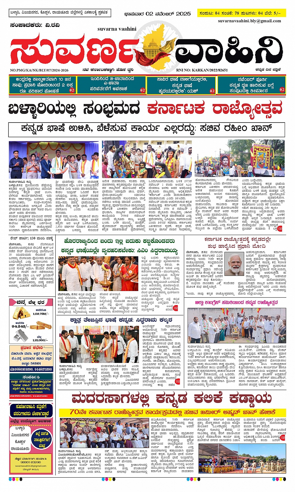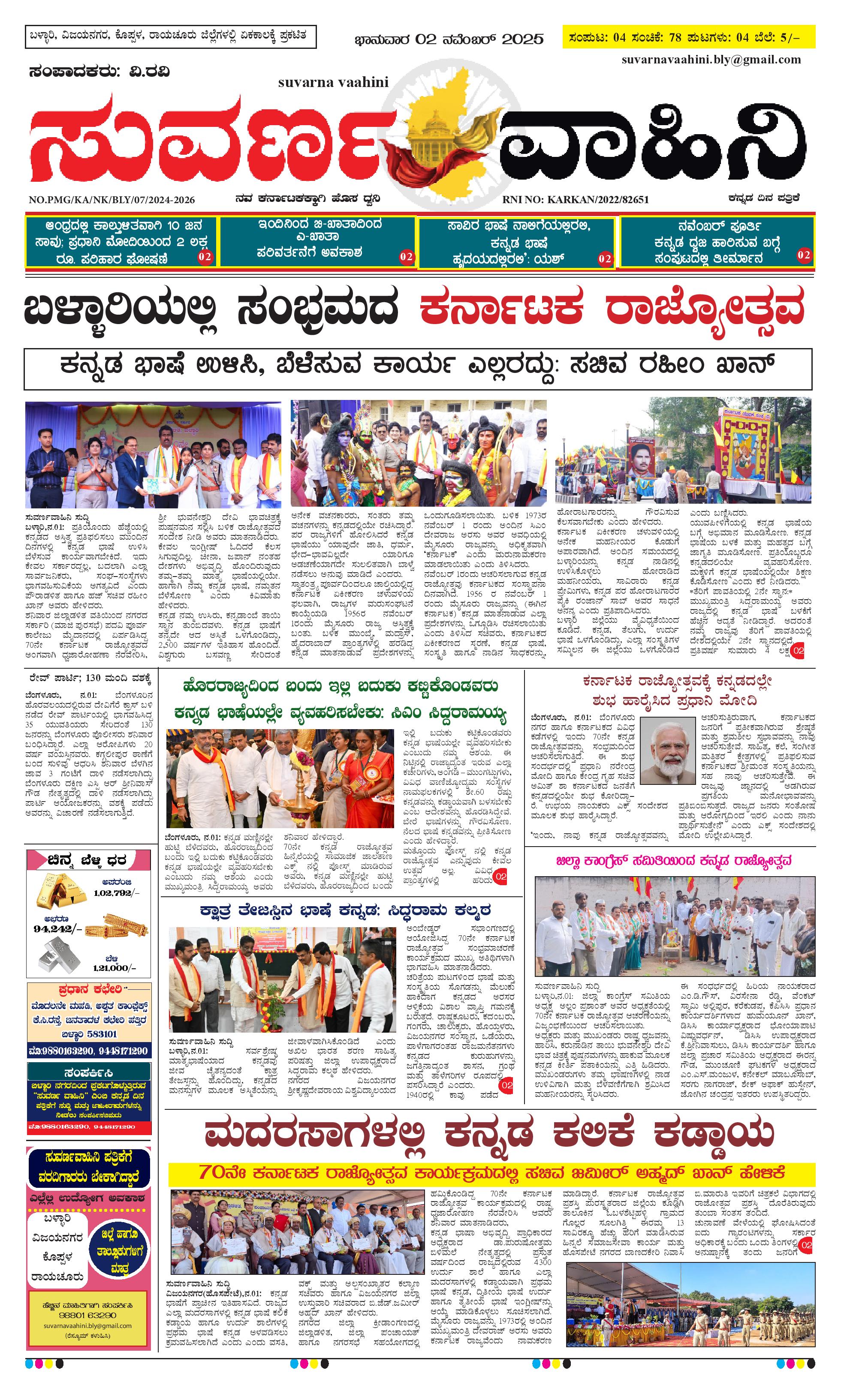 02 ನವೆಂಬರ್ 2025 Suvarna Vaahini November 02, 2025 << First << 1 >> Last >> Page 1Page 2Page 3Page 4 × 02 ನವೆಂಬರ್ 2025 Suvarna Vaahini page-1page-2page-3page-4 << First << 1 >> Last >> page-1page-2page-3page-4
