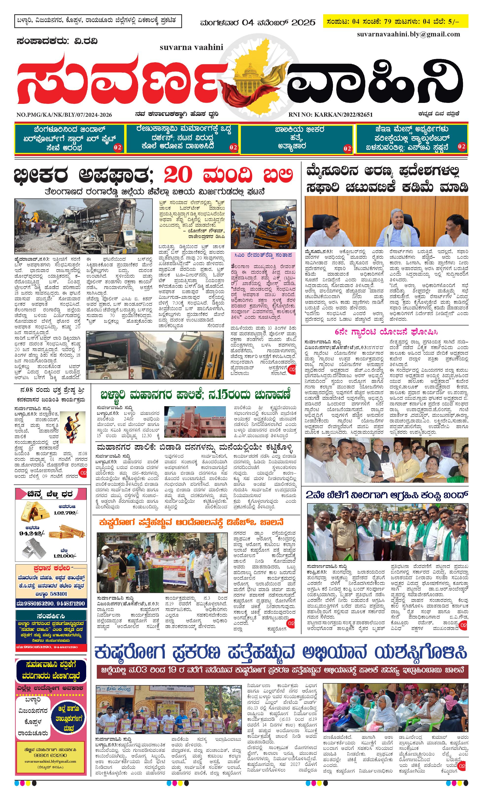 04 ನವೆಂಬರ್ 2025 Suvarna Vaahini November 04, 2025 << First << 1 >> Last >> Page 1Page 2Page 3Page 4 × 04 ನವೆಂಬರ್ 2025 Suvarna Vaahini page-1page-2page-3page-4 << First << 1 >> Last >> page-1page-2page-3page-4