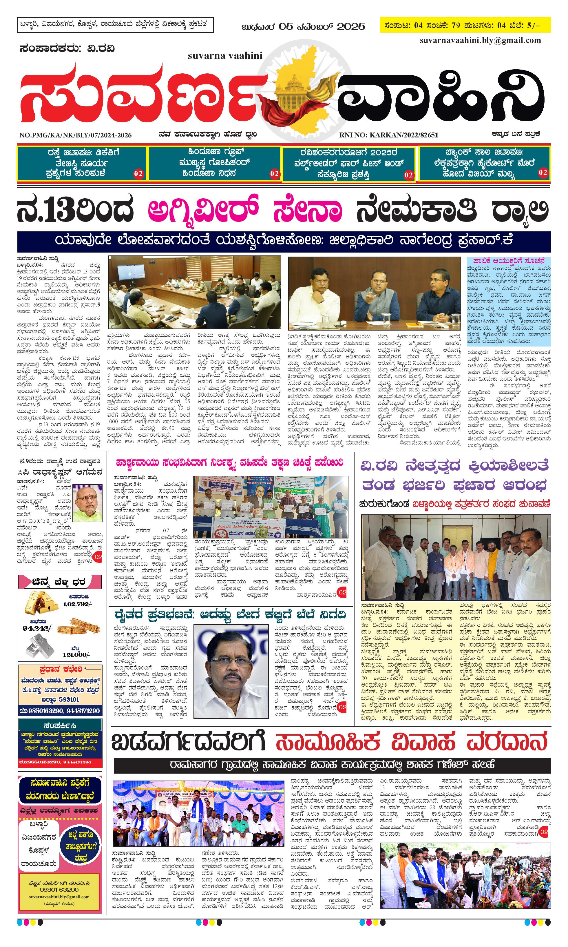 05 ನವೆಂಬರ್ 2025 Suvarna Vaahini November 05, 2025 << First << 1 >> Last >> Page 1Page 2Page 3Page 4 × 05 ನವೆಂಬರ್ 2025 Suvarna Vaahini page-1page-2page-3page-4 << First << 1 >> Last >> page-1page-2page-3page-4