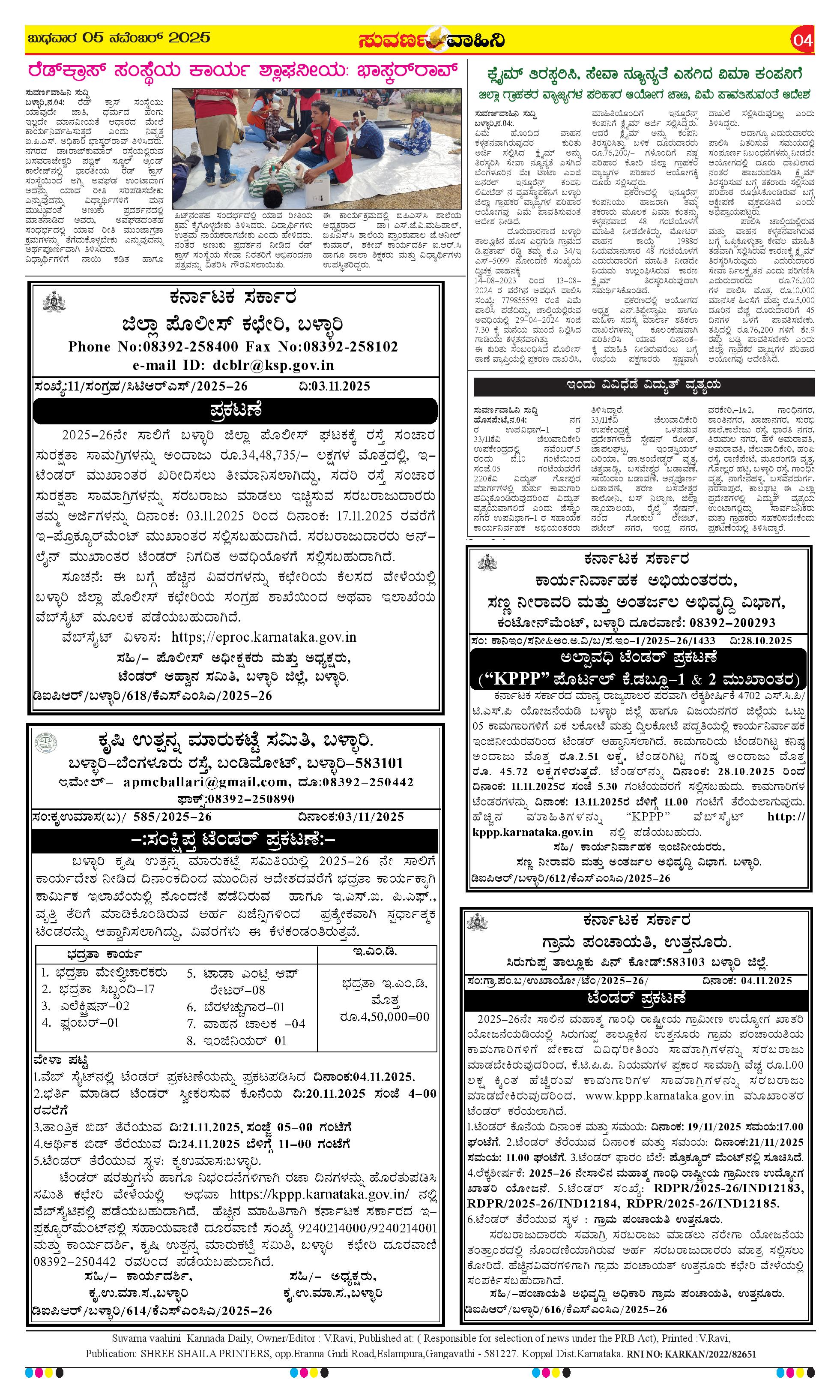05 ನವೆಂಬರ್ 2025 Suvarna Vaahini Page: 4 November 05, 2025 << First << 4 >> Last >> Page 1Page 2Page 3Page 4 × 05 ನವೆಂಬರ್ 2025 Suvarna Vaahini page-1page-2page-3page-4 << First << 4 >> Last >> page-1page-2page-3page-4