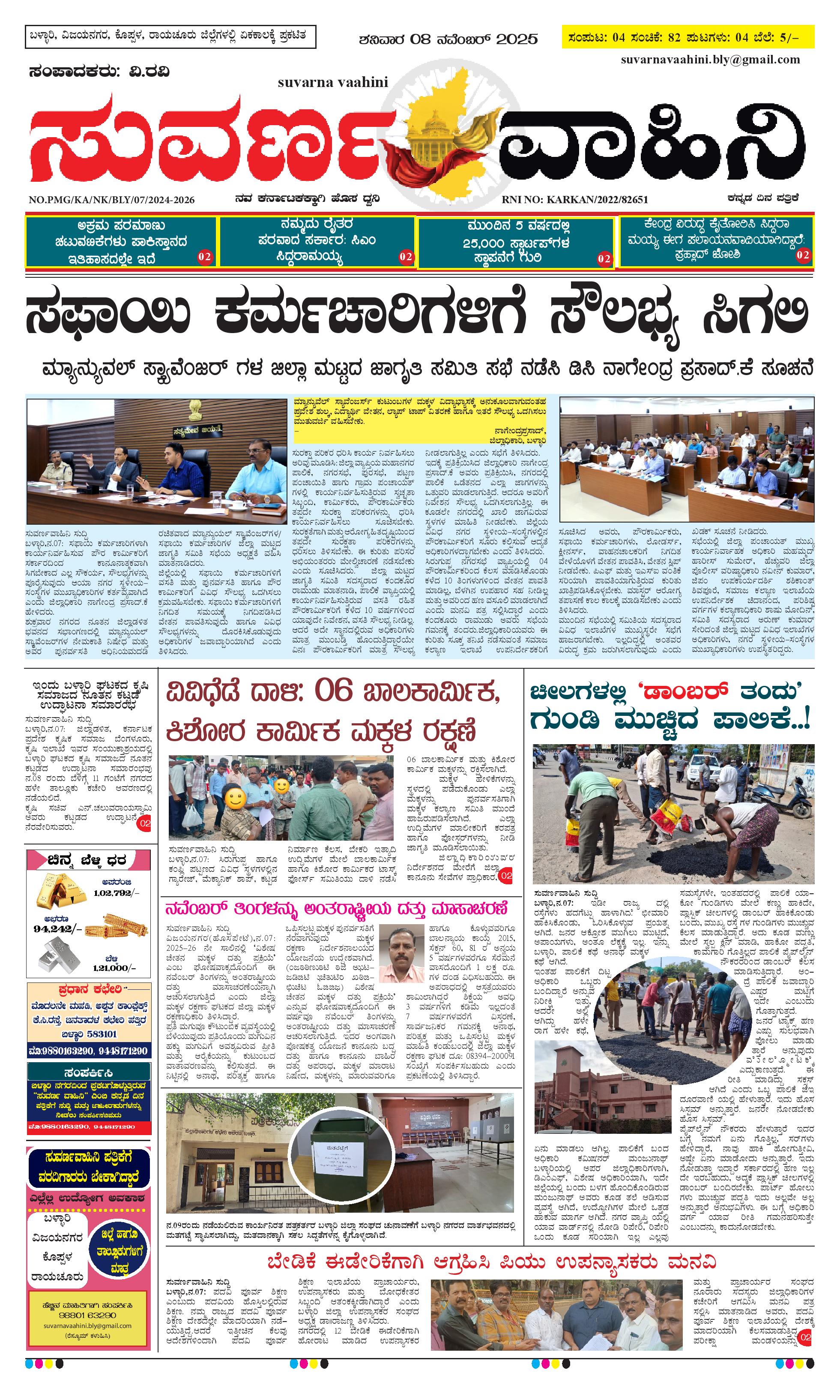 08 ನವೆಂಬರ್ 2025 Suvarna Vaahini