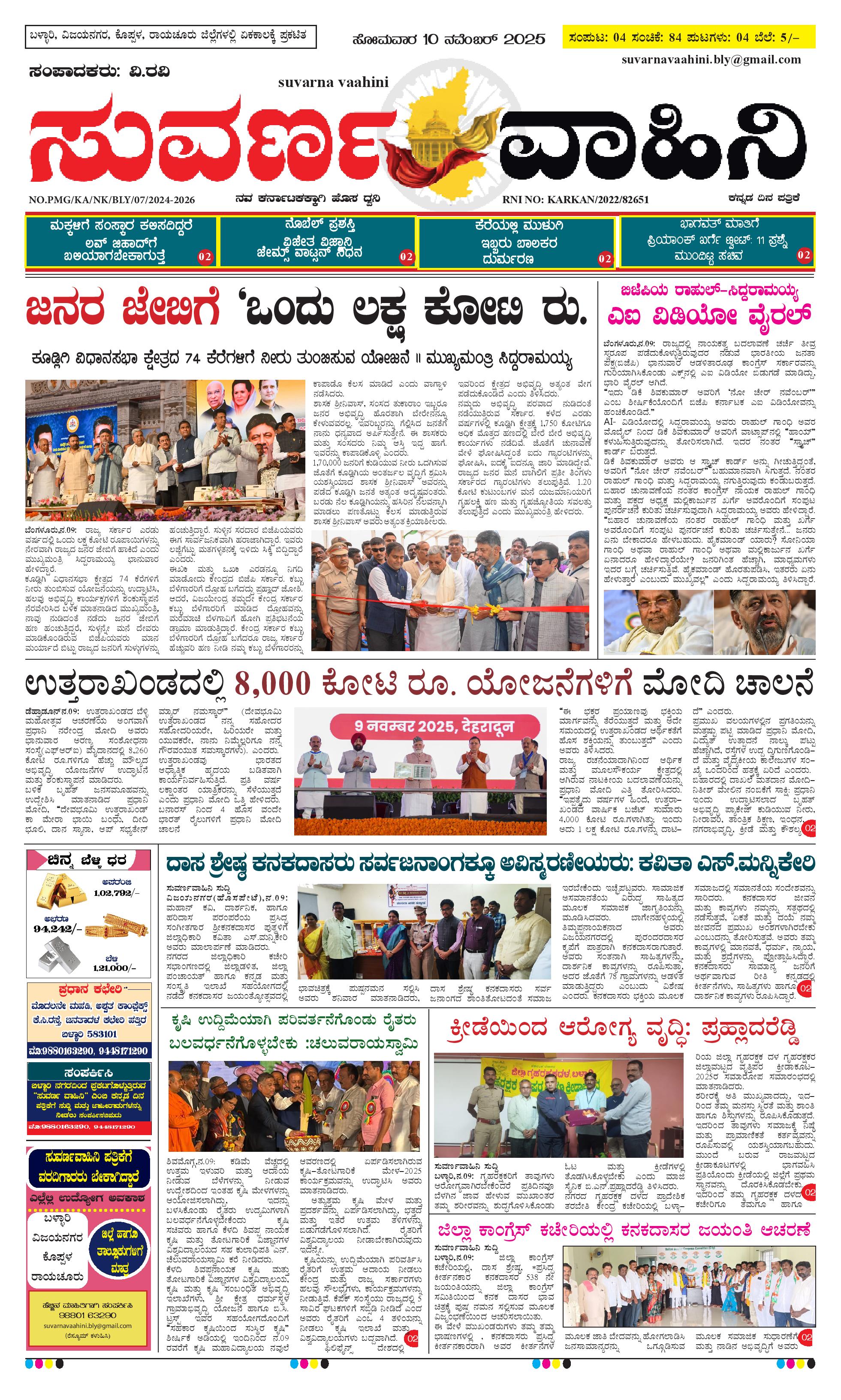 10 ನವೆಂಬರ್ 2025 Suvarna Vaahini