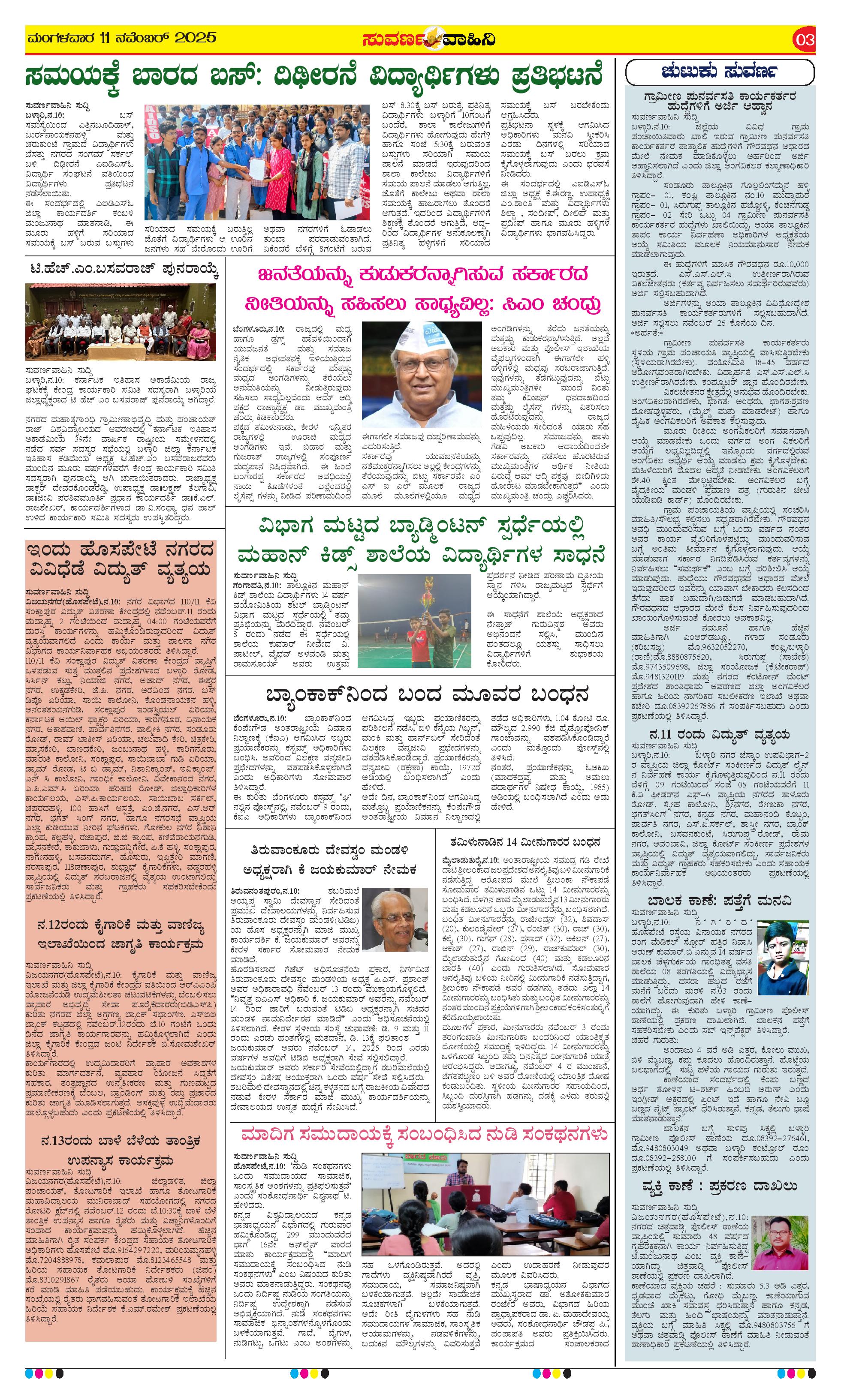 11 ನವೆಂಬರ್ 2025 Suvarna Vaahini Page: 3 November 11, 2025 << First << 3 >> Last >> Page 1Page 2Page 3Page 4 × 11 ನವೆಂಬರ್ 2025 Suvarna Vaahini page-1page-2page-3page-4 << First << 3 >> Last >> page-1page-2page-3page-4