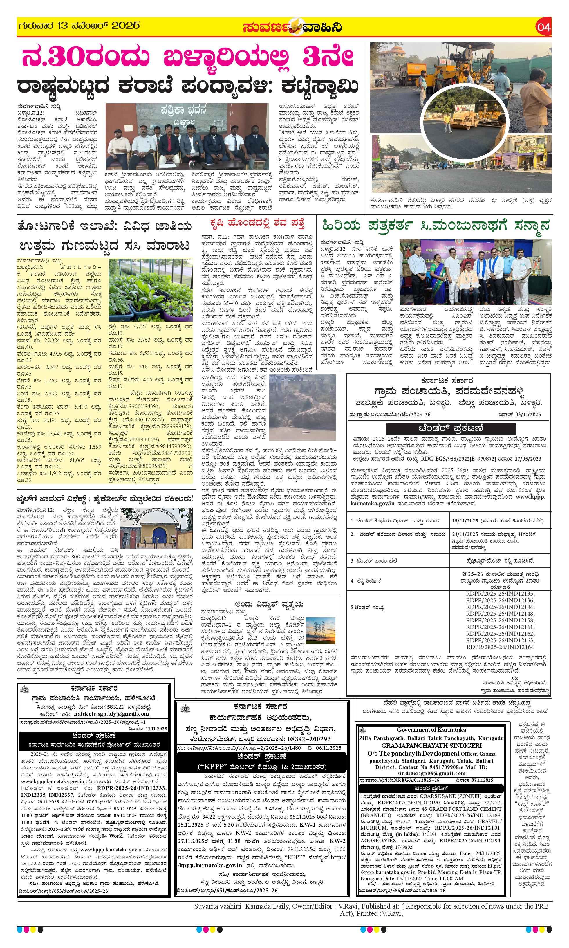 13 ನವೆಂಬರ್ 2025 Suvarna Vaahini Page: 4 November 13, 2025 << First << 4 >> Last >> Page 1Page 2Page 3Page 4 × 13 ನವೆಂಬರ್ 2025 Suvarna Vaahini page-1page-2page-3page-4 << First << 4 >> Last >> page-1page-2page-3page-4