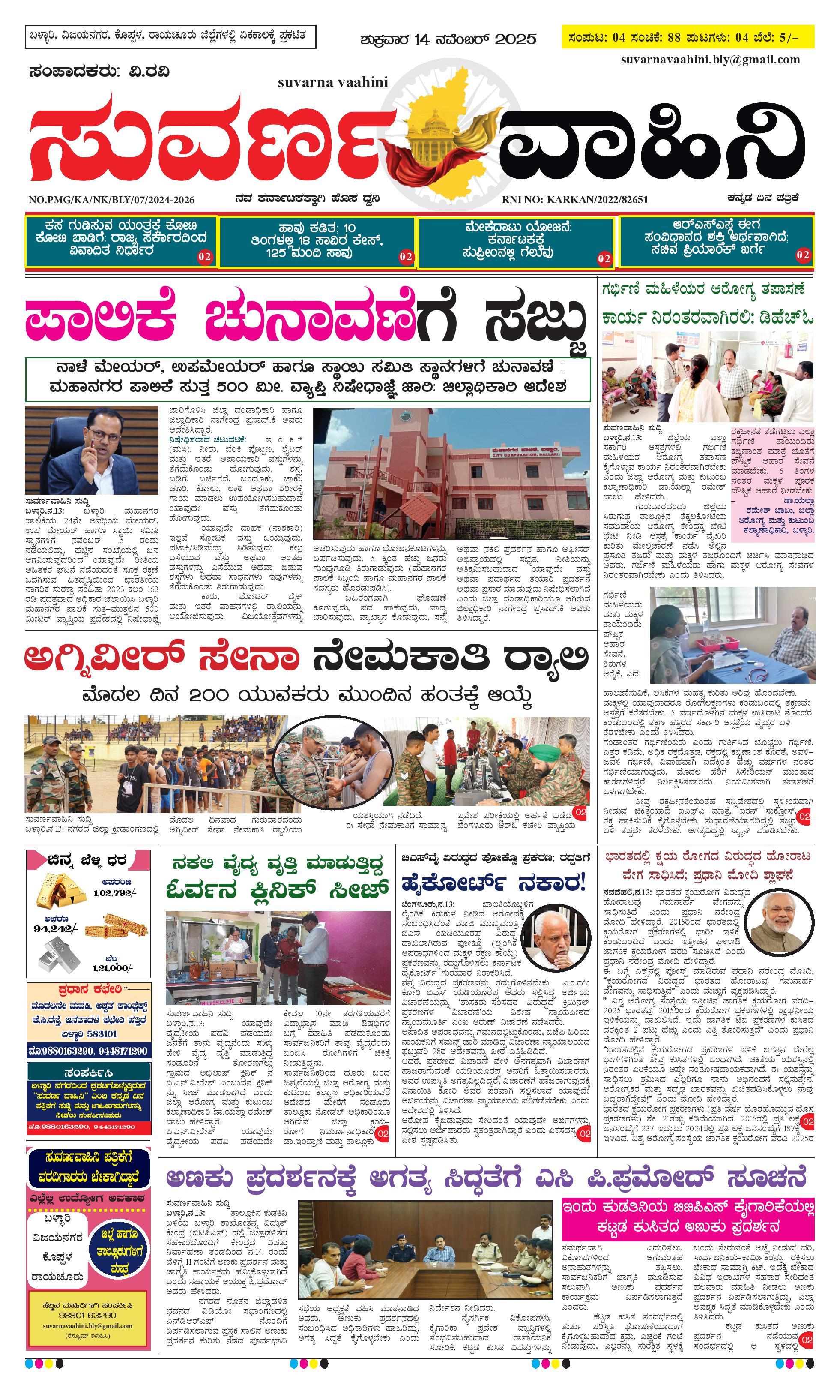 14 ನವೆಂಬರ್ 2025 Suvarna Vaahini November 14, 2025 << First << 1 >> Last >> Page 1Page 2Page 3Page 4 × 14 ನವೆಂಬರ್ 2025 Suvarna Vaahini page-1page-2page-3page-4 << First << 1 >> Last >> page-1page-2page-3page-4