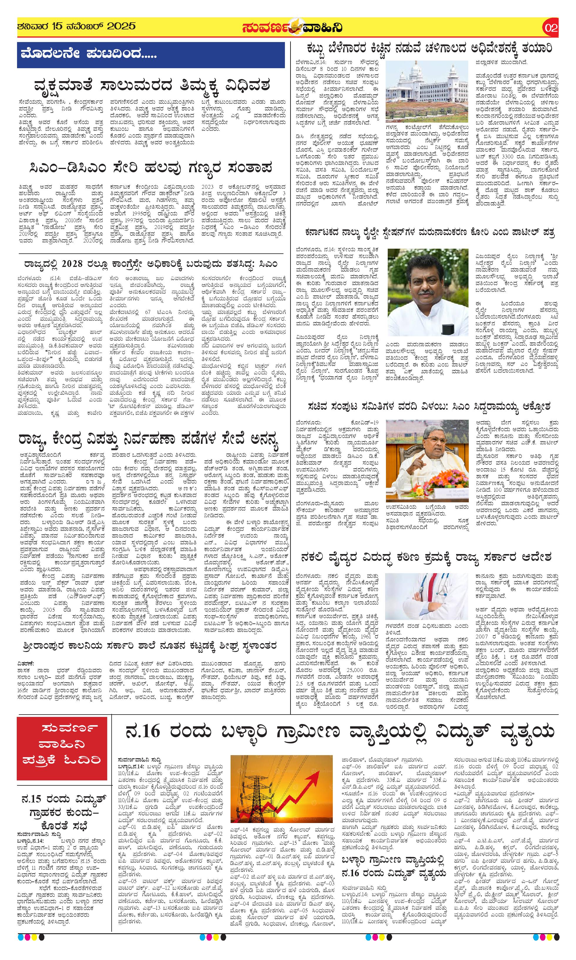 15 ನವೆಂಬರ್ 2025 Suvarna Vaahini Page: 2 November 15, 2025 << First << 2 >> Last >> Page 1Page 2Page 3Page 4 × 15 ನವೆಂಬರ್ 2025 Suvarna Vaahini page-1page-2page-3page-4 << First << 2 >> Last >> page-1page-2page-3page-4
