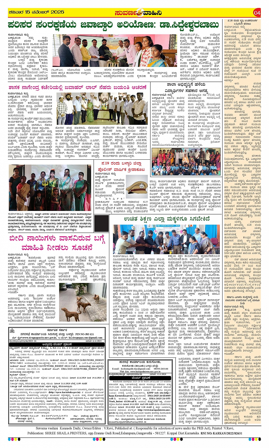 15 ನವೆಂಬರ್ 2025 Suvarna Vaahini Page: 4 November 15, 2025 << First << 4 >> Last >> Page 1Page 2Page 3Page 4 × 15 ನವೆಂಬರ್ 2025 Suvarna Vaahini page-1page-2page-3page-4 << First << 4 >> Last >> page-1page-2page-3page-4