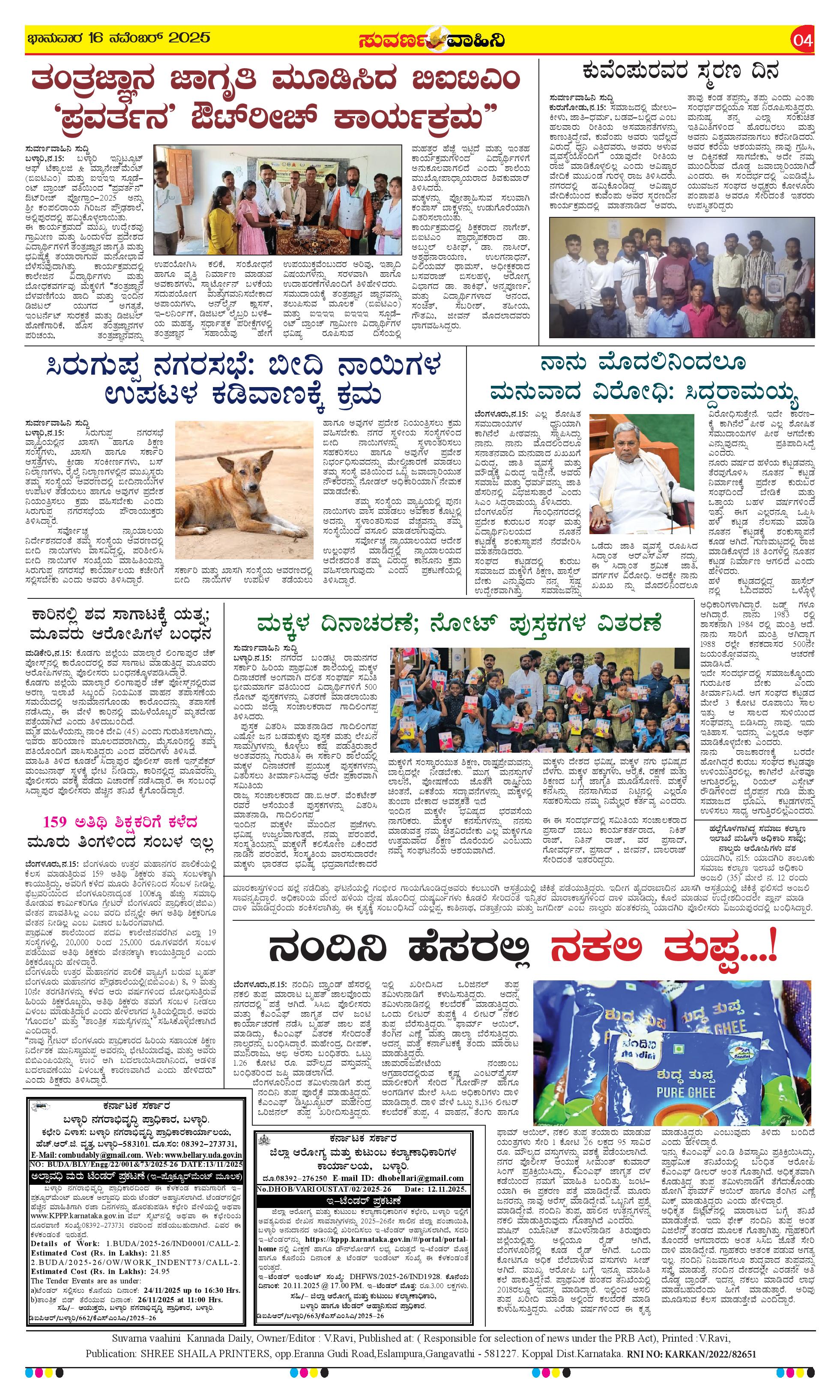 16 ನವೆಂಬರ್ 2025 Suvarna Vaahini Page: 4 November 16, 2025 << First << 4 >> Last >> Page 1Page 2Page 3Page 4 × 16 ನವೆಂಬರ್ 2025 Suvarna Vaahini page-1page-2page-3page-4 << First << 4 >> Last >> page-1page-2page-3page-4
