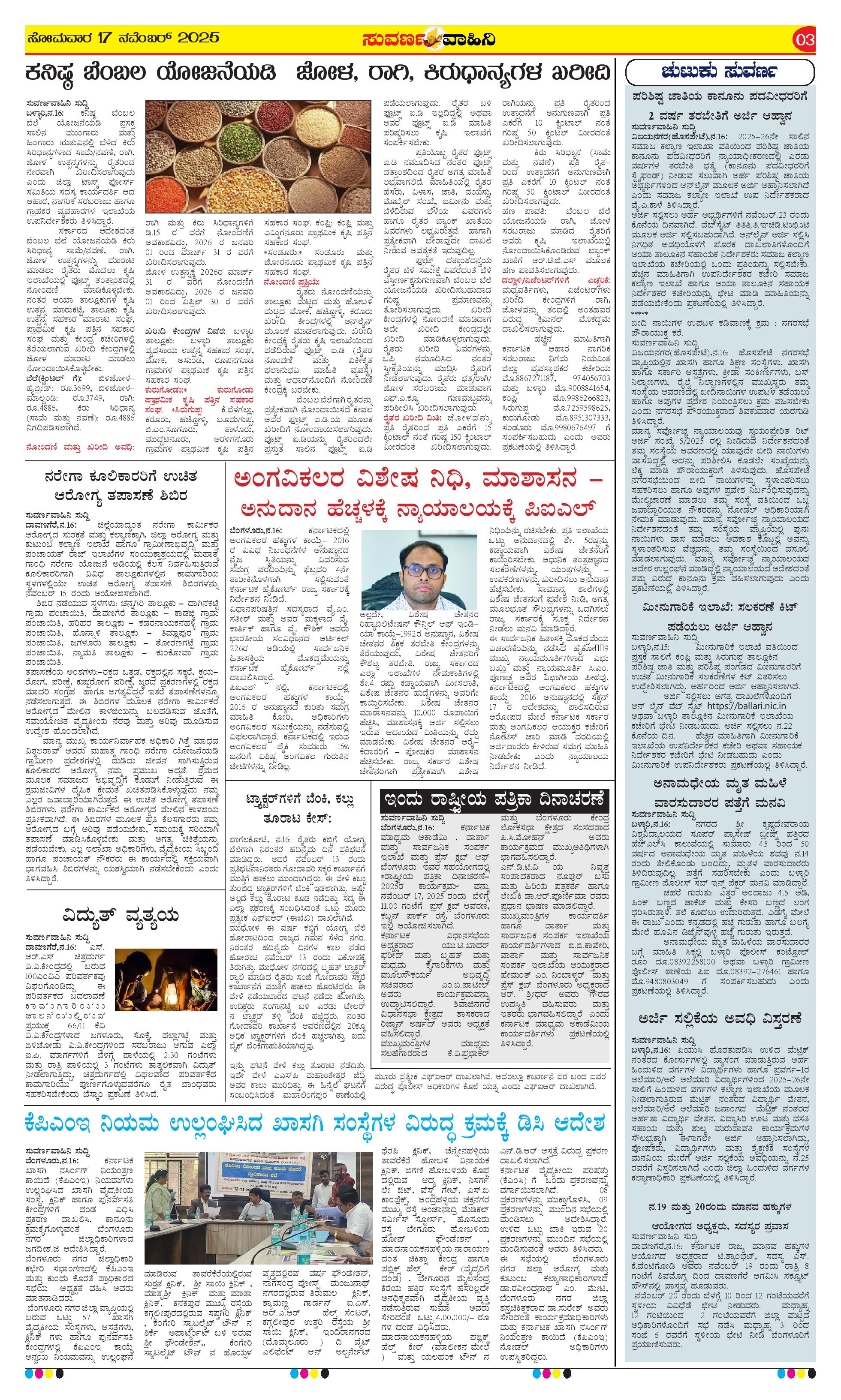 17 ನವೆಂಬರ್ 2025 Suvarna Vaahini Page: 3 November 17, 2025 << First << 3 >> Last >> Page 1Page 2Page 3Page 4 × 17 ನವೆಂಬರ್ 2025 Suvarna Vaahini page-1page-2page-3page-4 << First << 3 >> Last >> page-1page-2page-3page-4