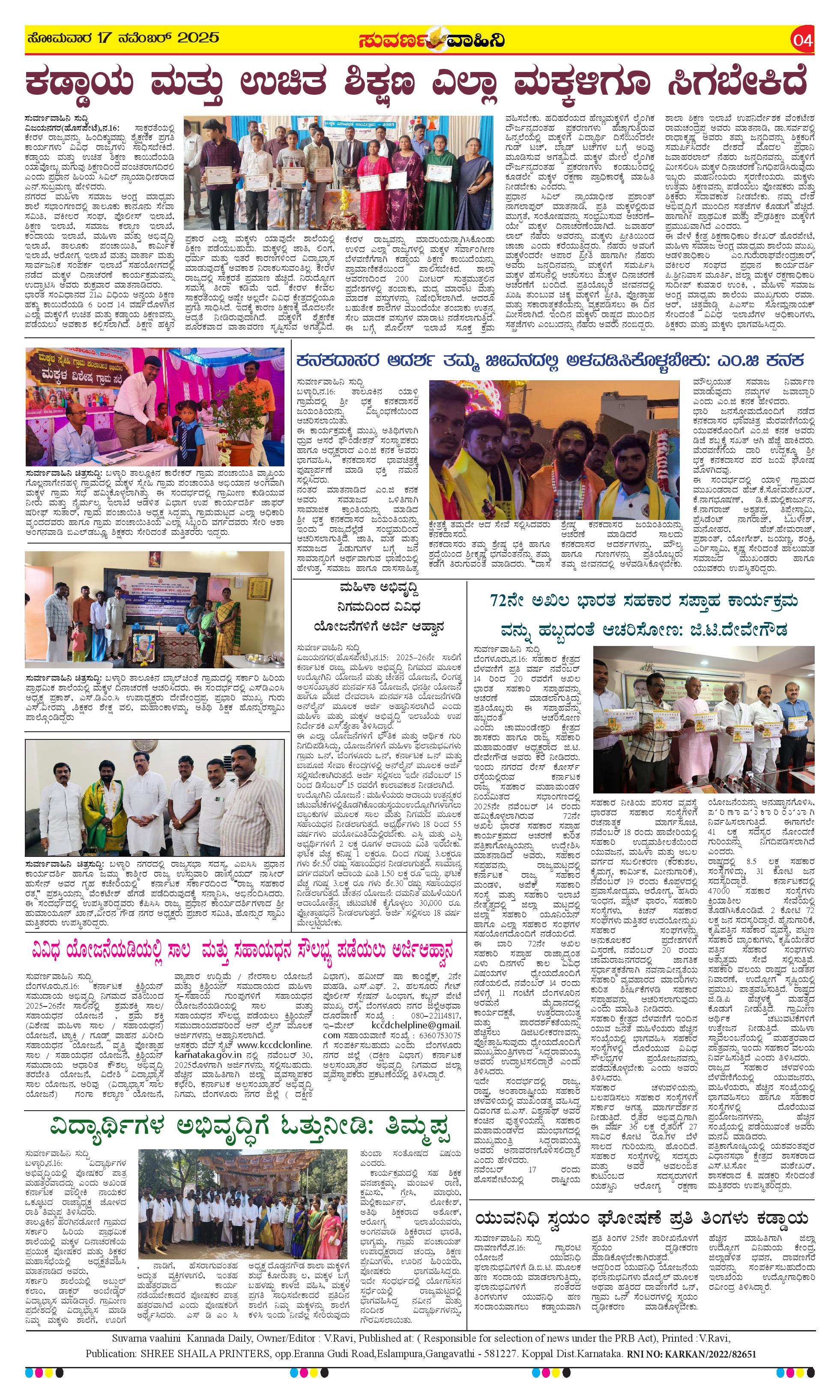 17 ನವೆಂಬರ್ 2025 Suvarna Vaahini Page: 4 November 17, 2025 << First << 4 >> Last >> Page 1Page 2Page 3Page 4 × 17 ನವೆಂಬರ್ 2025 Suvarna Vaahini page-1page-2page-3page-4 << First << 4 >> Last >> page-1page-2page-3page-4