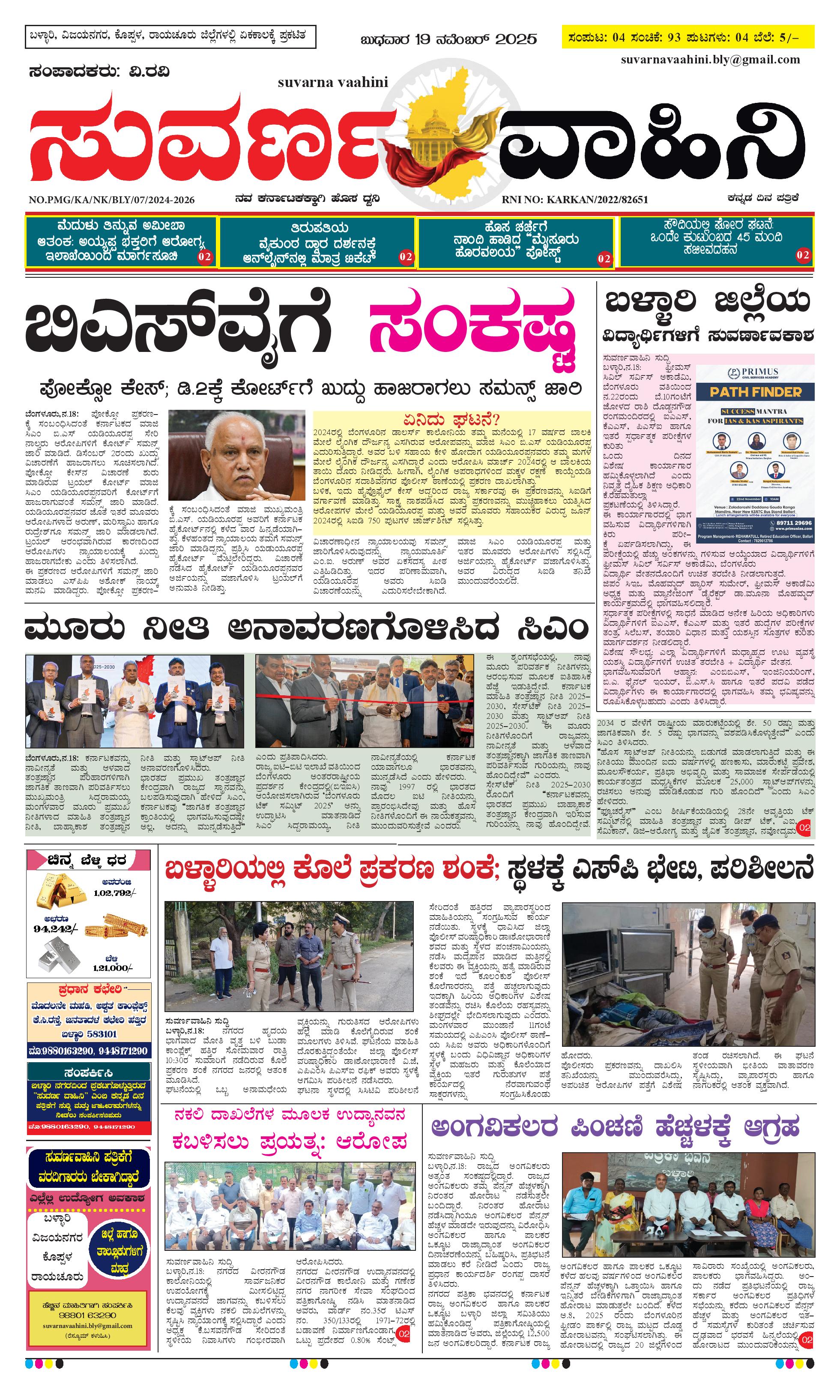 19 ನವೆಂಬರ್ 2025 Suvarna Vaahini November 19, 2025 << First << 1 >> Last >> Page 1Page 2Page 3Page 4 × 19 ನವೆಂಬರ್ 2025 Suvarna Vaahini page-1page-2page-3page-4 << First << 1 >> Last >> page-1page-2page-3page-4