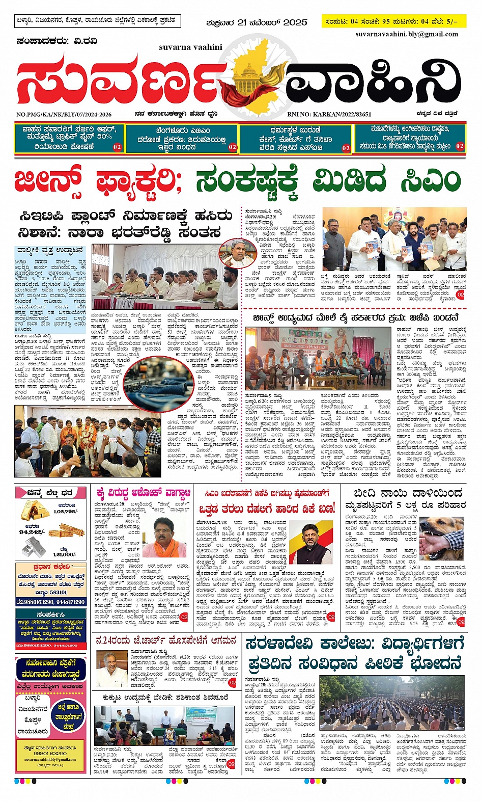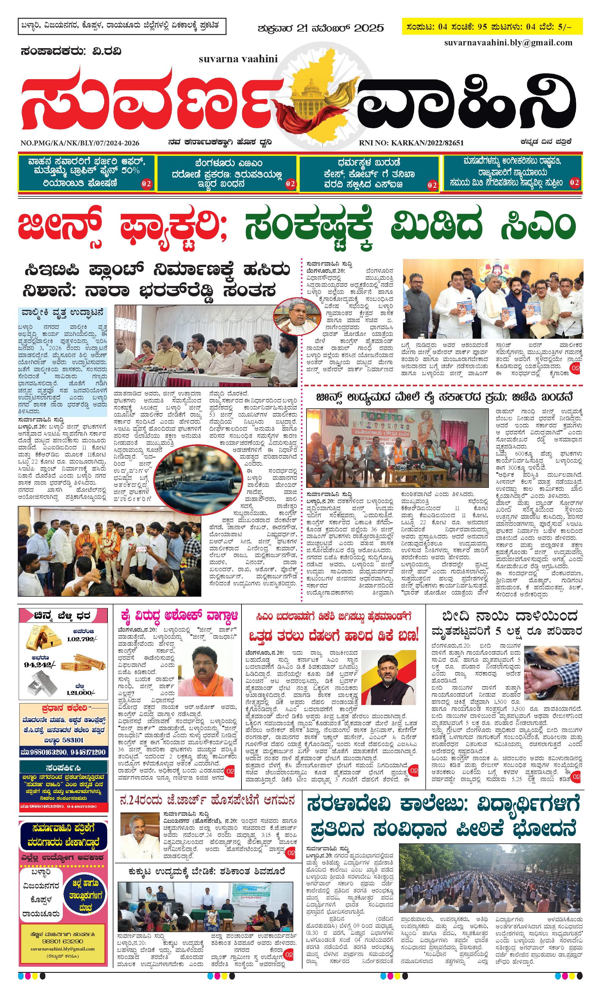 21 ನವೆಂಬರ್ 2025 Suvarna Vaahini November 21, 2025 << First << 1 >> Last >> Page 1Page 2Page 3Page 4 × 21 ನವೆಂಬರ್ 2025 Suvarna Vaahini page-1page-2page-3page-4 << First << 1 >> Last >> page-1page-2page-3page-4
