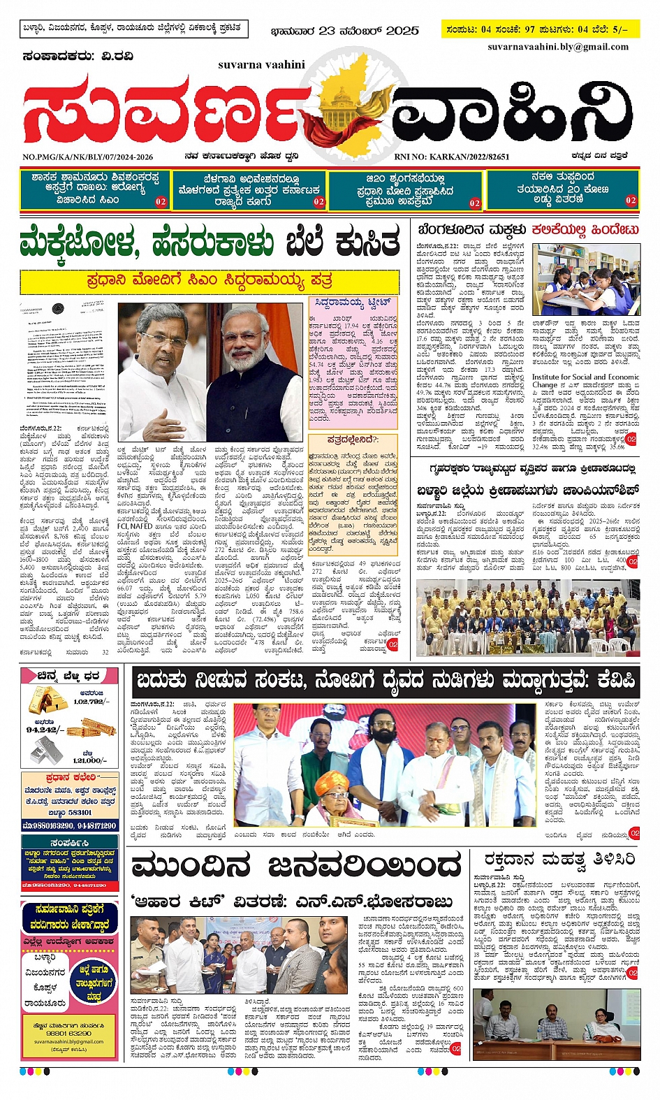 23 ನವೆಂಬರ್ 2025 Suvarna Vaahini November 23, 2025 << First << 1 >> Last >> Page 1Page 2Page 3Page 4 × 23 ನವೆಂಬರ್ 2025 Suvarna Vaahini page-1page-2page-3page-4 << First << 1 >> Last >> page-1page-2page-3page-4
