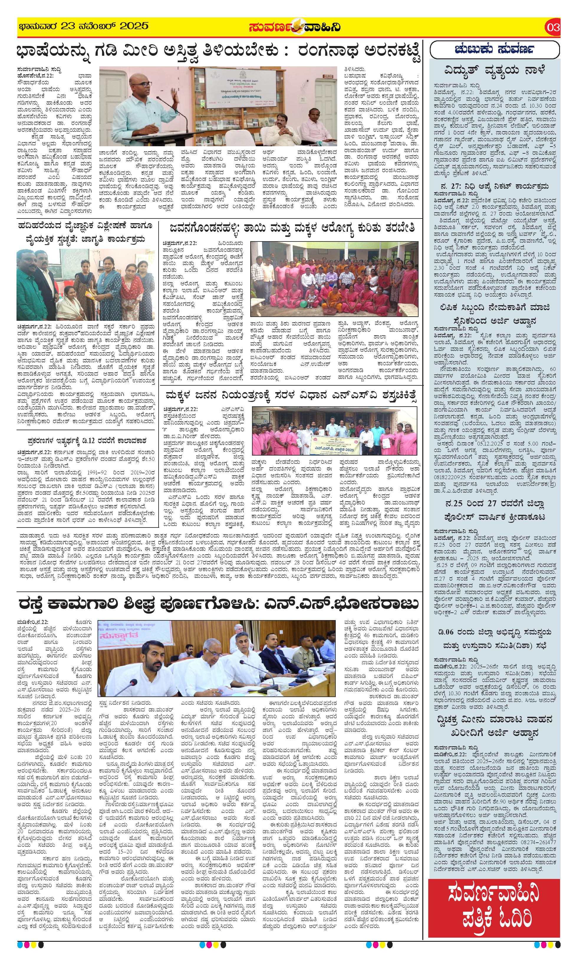 23 ನವೆಂಬರ್ 2025 Suvarna Vaahini Page: 3 November 23, 2025 << First << 3 >> Last >> Page 1Page 2Page 3Page 4 × 23 ನವೆಂಬರ್ 2025 Suvarna Vaahini page-1page-2page-3page-4 << First << 3 >> Last >> page-1page-2page-3page-4