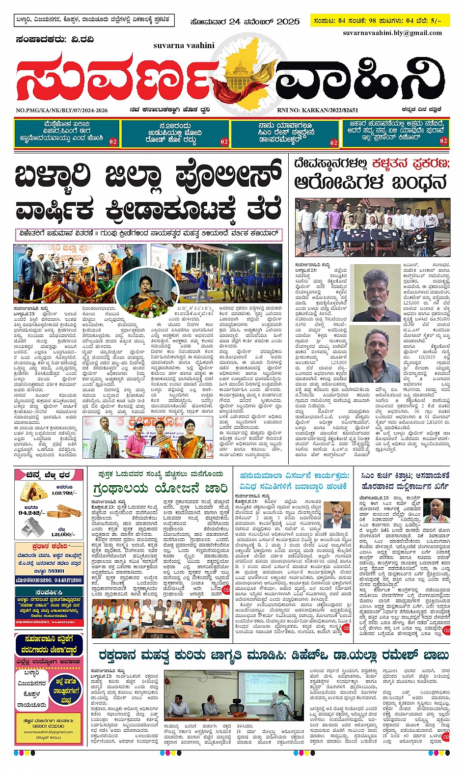 24 ನವೆಂಬರ್ 2025 Suvarna Vaahini November 24, 2025 << First << 1 >> Last >> Page 1Page 2Page 3Page 4 × 24 ನವೆಂಬರ್ 2025 Suvarna Vaahini page-1page-2page-3page-4 << First << 1 >> Last >> page-1page-2page-3page-4